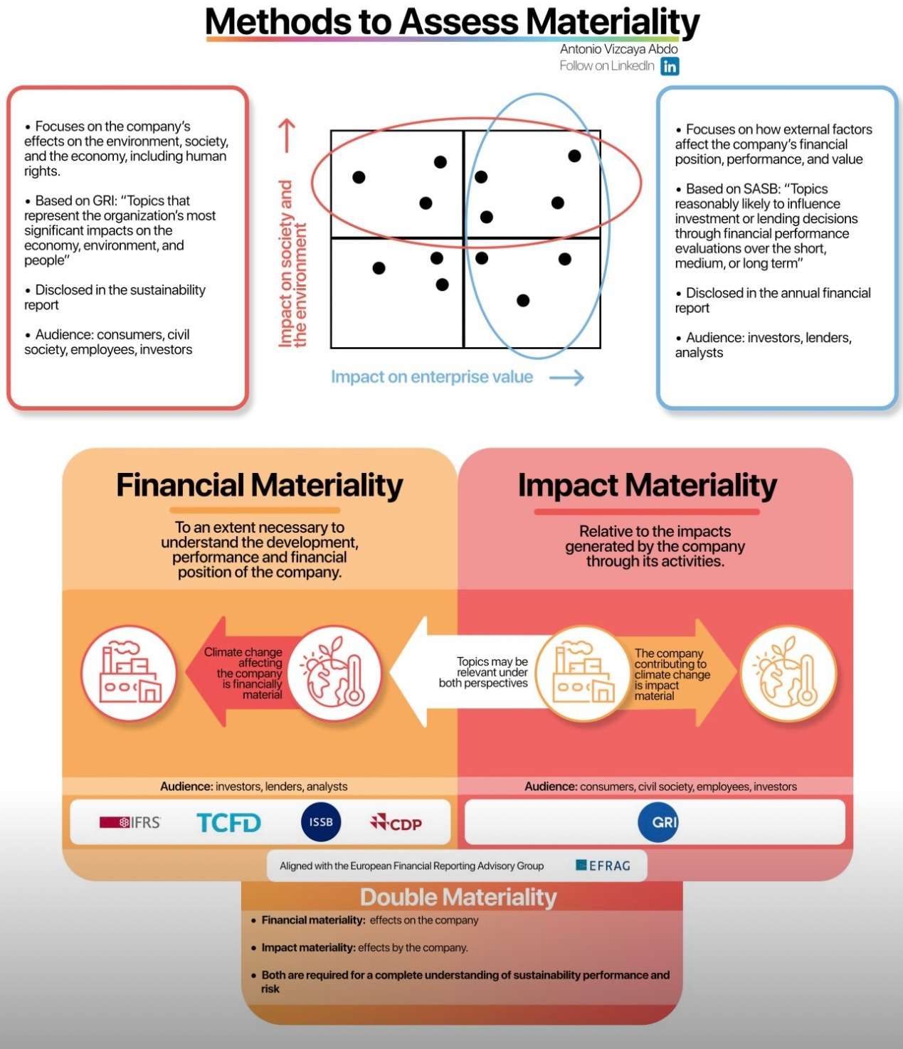 이러한 이중 접근 방식은 EU의 기업 지속가능성 보고 지침(CSRD)의 일부를 구성하는 유럽 지속가능성 보고 표준(ESRS)의 핵심입니다.