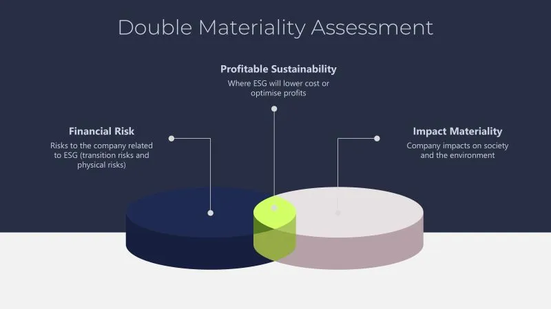 이중 중대성 평가(Double Materiality Assessment)는 명확한 설명을 위한 길이며, 우리는 데이터 포인트의 양에서 초점을 벗어나야 합니다. 기업은 슬로건을 넘어 Double Materiality Assessment를 사용하여 목표를 전략과 운영에 통합할 수 있습니다(그리고 반드시!) DMA는 기업이 핵심 중요 사항을 선택(보고 부담 감소)하는 동시에 기업 정체성 및 전략에 부합하도록 돕기 위해 고안되었습니다.