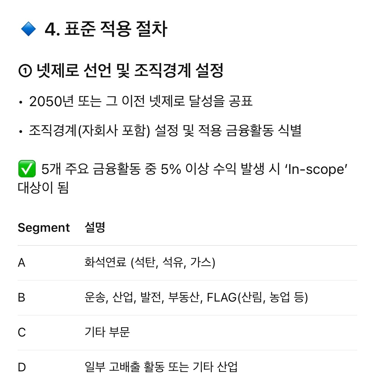 • Scope 3(카테고리 1~14): 금융활동 외 수익이 5% 이상일 경우 필수