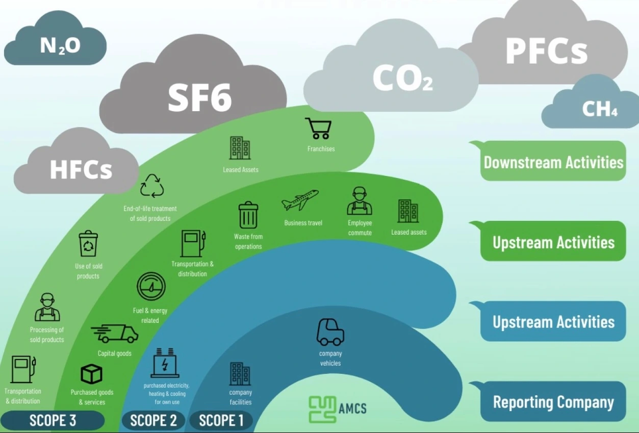 • AMCS, Scope 1·2·3 Emissions 인포그래픽.