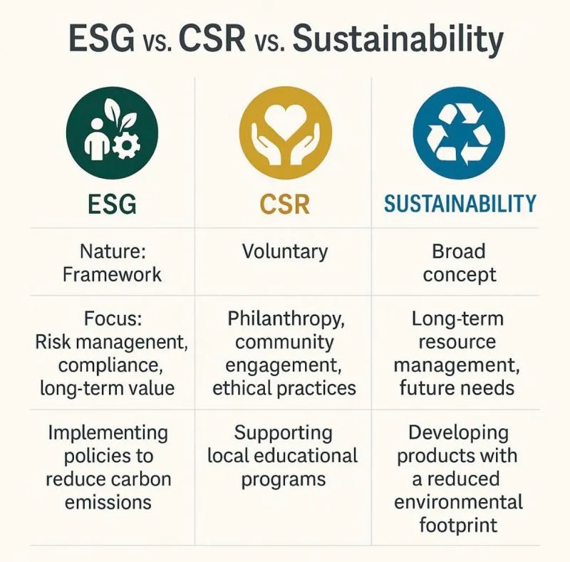 ESG vs. CSR vs. 지속 가능성: 차이점 이해하기