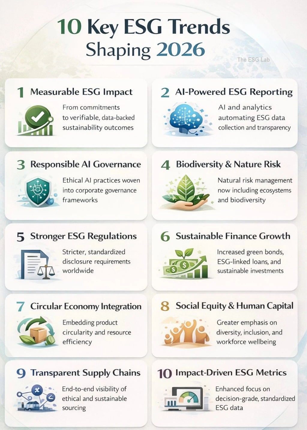 Together, these trends signal a clear shift: ESG in 2026 will be about credibility, integration, and real-world impact—not narratives.