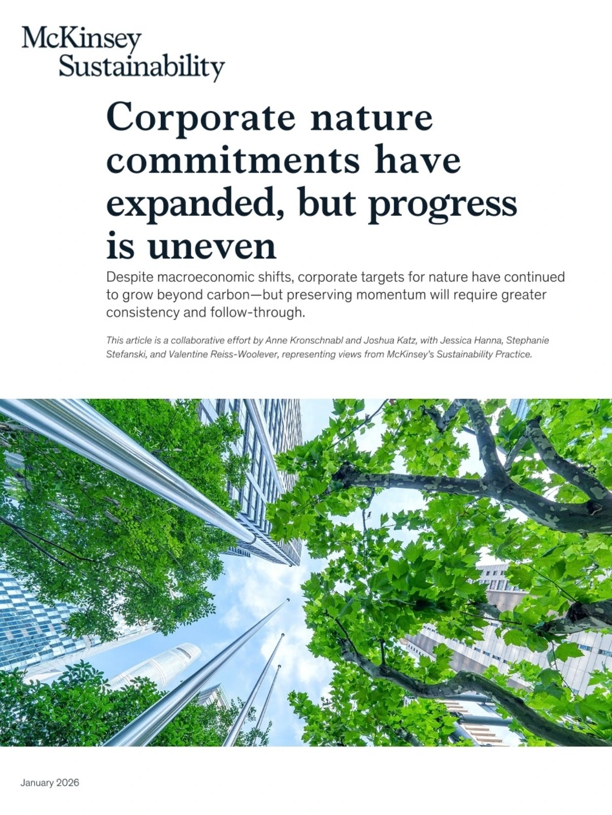 • McKinsey & Company (2026). Corporate nature commitments have expanded, but progress is uneven. McKinsey Sustainability Practice.
