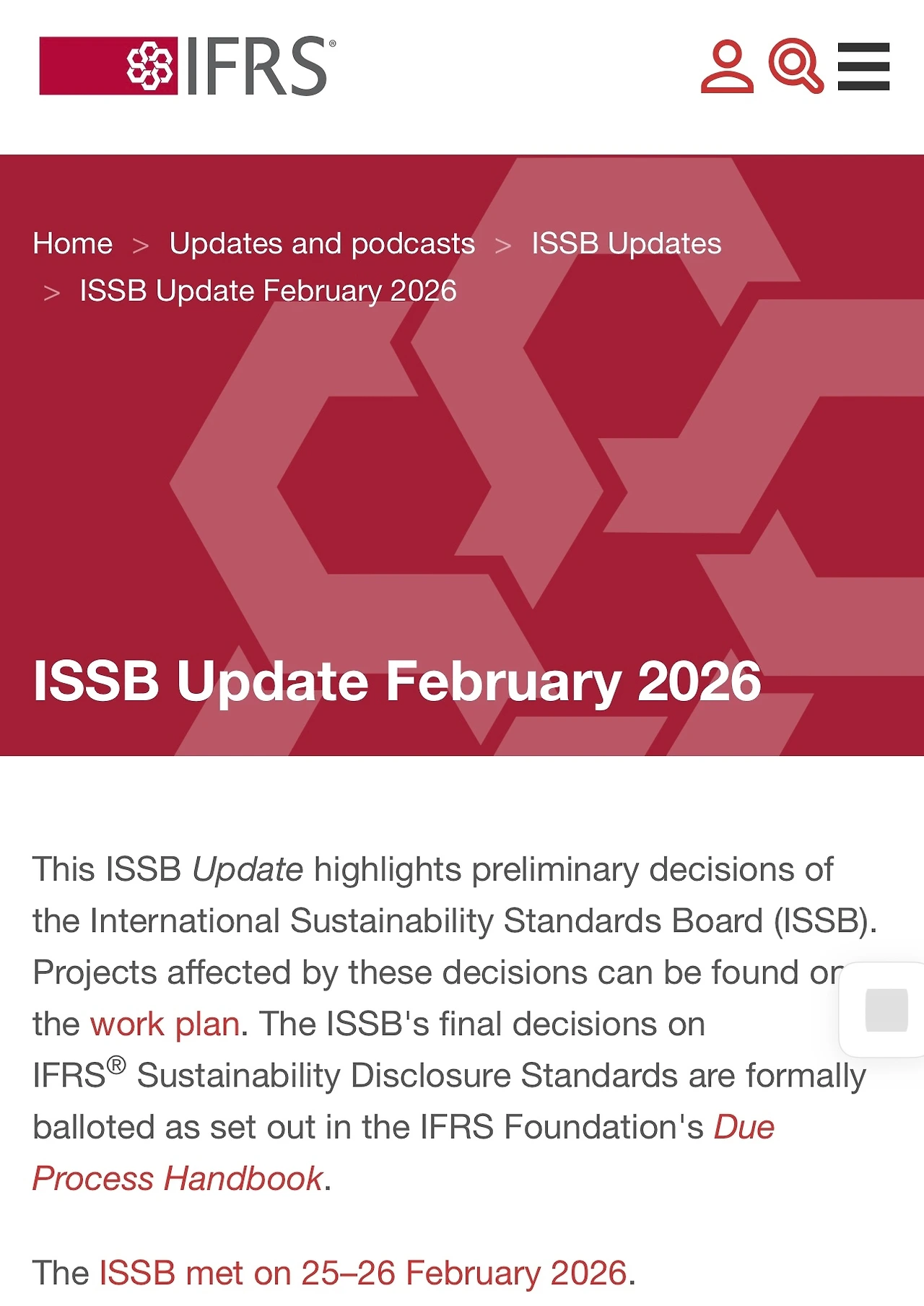 • ISSB는 2026년 2월 25–26일 회의를 개최했습니다.