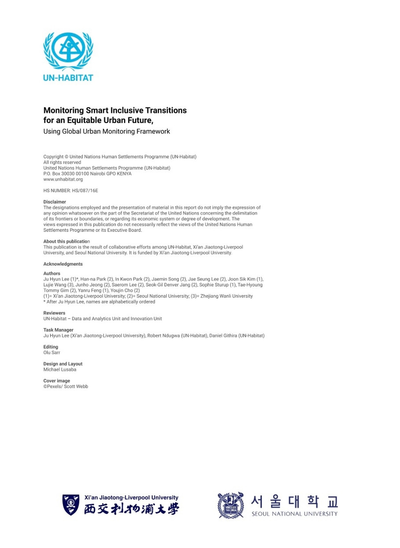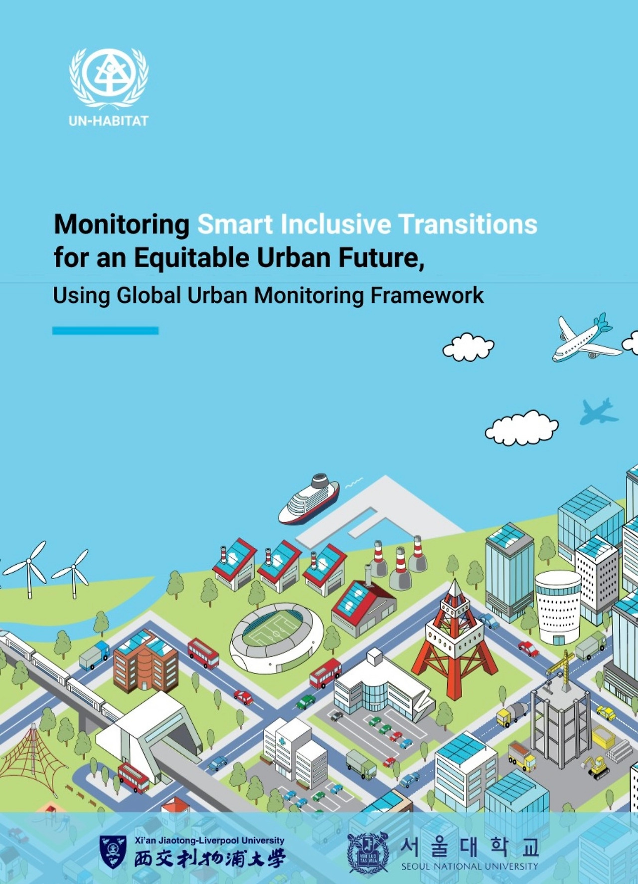 이 보고서는 UN-Habitat, 시안 자오퉁-리버풀 대학교(Xi’an Jiaotong-Liverpool University), 서울대학교의 공동 연구 결과로, 도시의 공정한 전환을 위한 스마트 포용적(Smart Inclusive) 접근 방식을 분석하고 평가하는 내용을 담고 있다. 연구는 **글로벌 도시 모니터링 프레임워크(GUMF, Global Urban Monitoring Framework)**를 활용하여 도시 지속 가능성과 SDGs(지속가능발전목표)를 추적하는 방법을 제시한다.