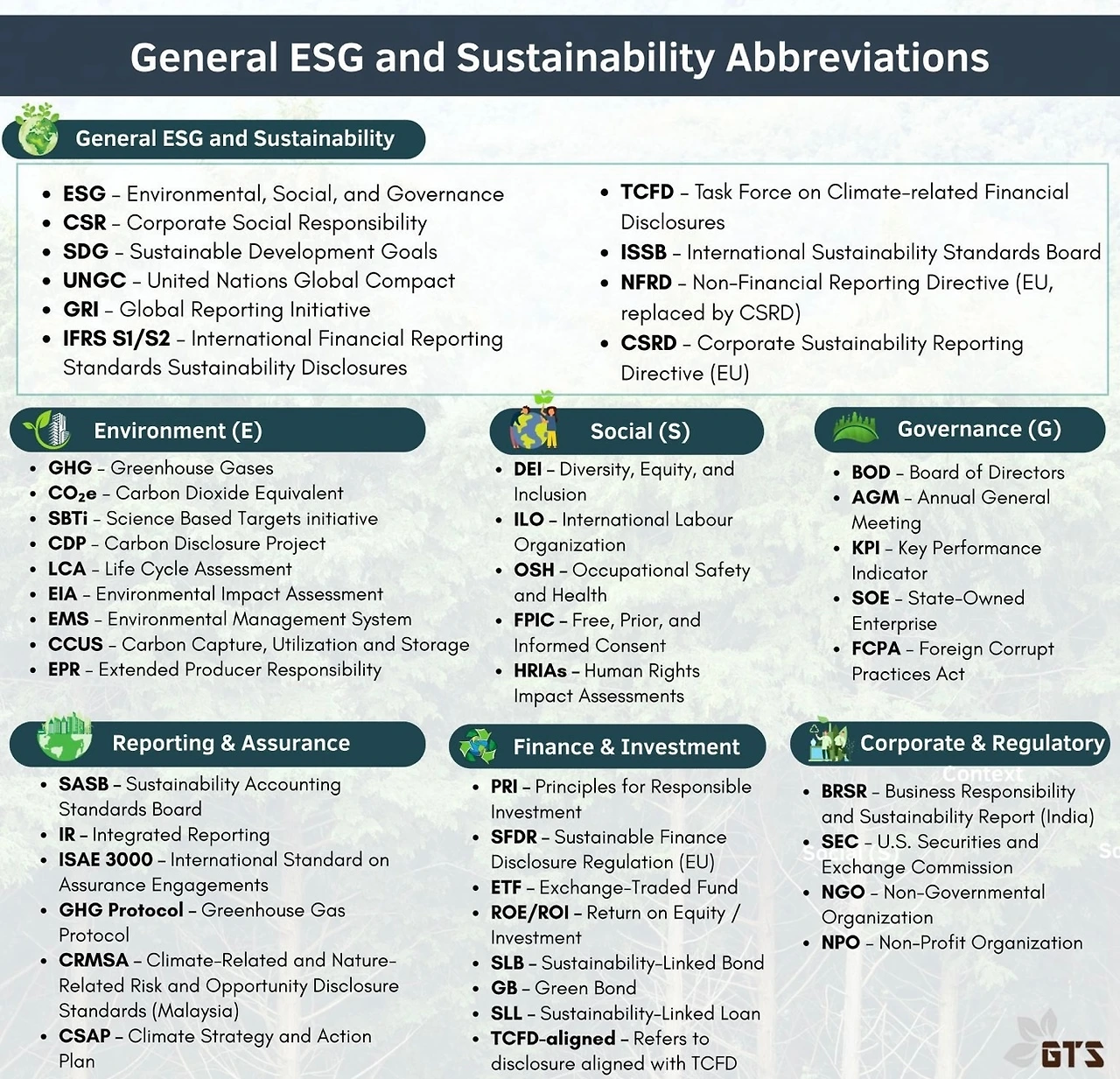 이 이미지에 나온 약어들은 단순한 용어 모음이 아니라, ESG 실무 전반을 구성하는 핵심 언어라고 볼 수 있습니다.