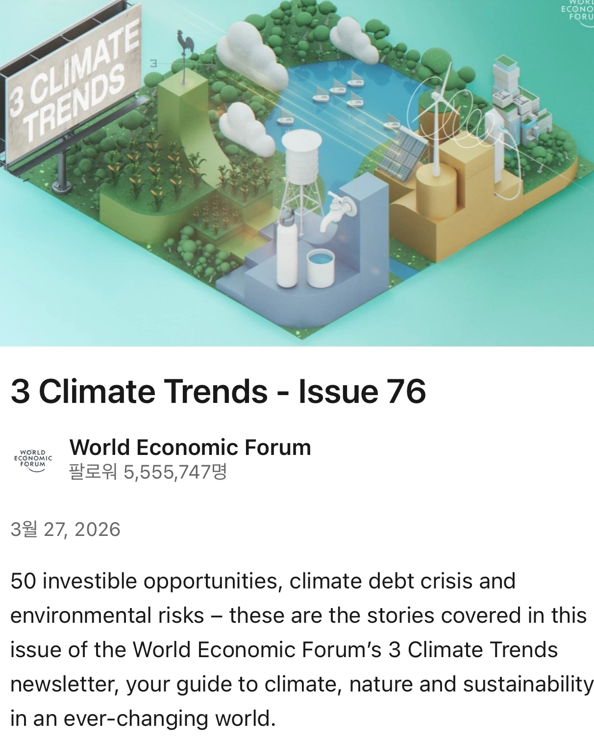본 보고서는 글로벌 기후·자연·지속가능성 이슈를 3가지 핵심 트렌드로 압축하여 제시하는 WEF의 주간 인사이트 콘텐츠입니다.