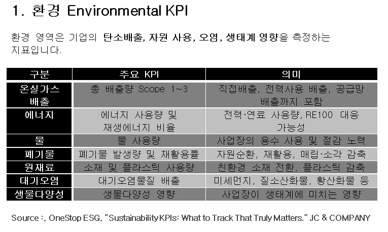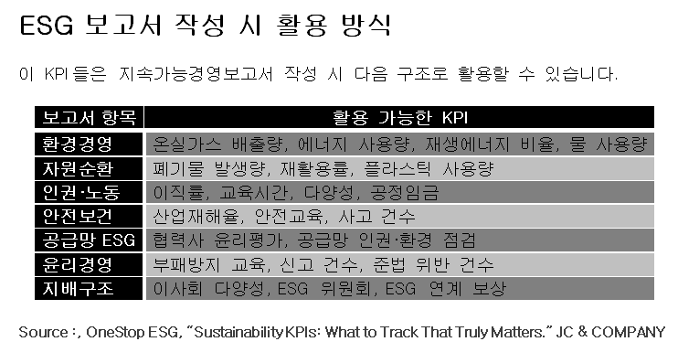 ESG KPI를 단순히 “좋은 활동 목록”으로 보는 것이 아니라,