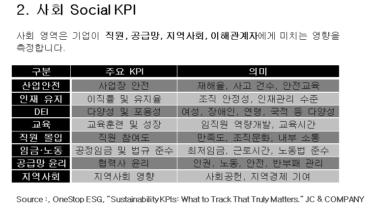 2. 사회 KPI는 직원과 공급망 관리가 핵심입니다.