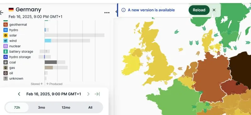 • Germany Energy Dashboard (2025년 2월 16일 데이터 기준)