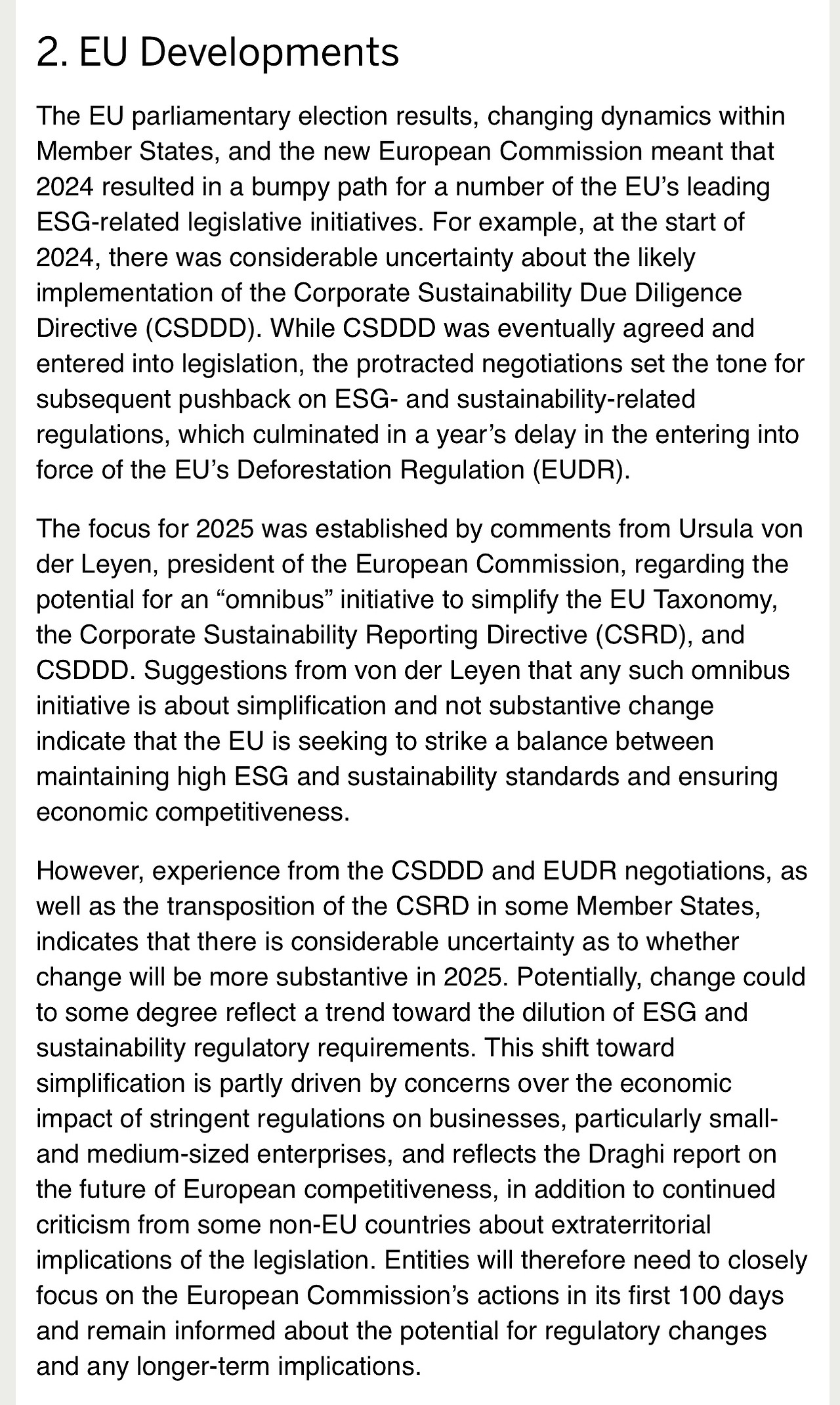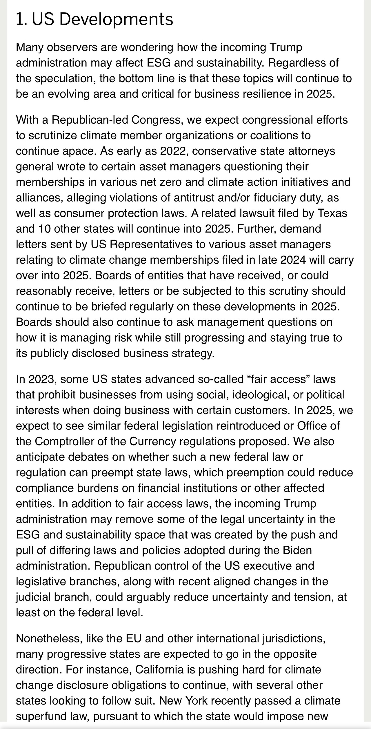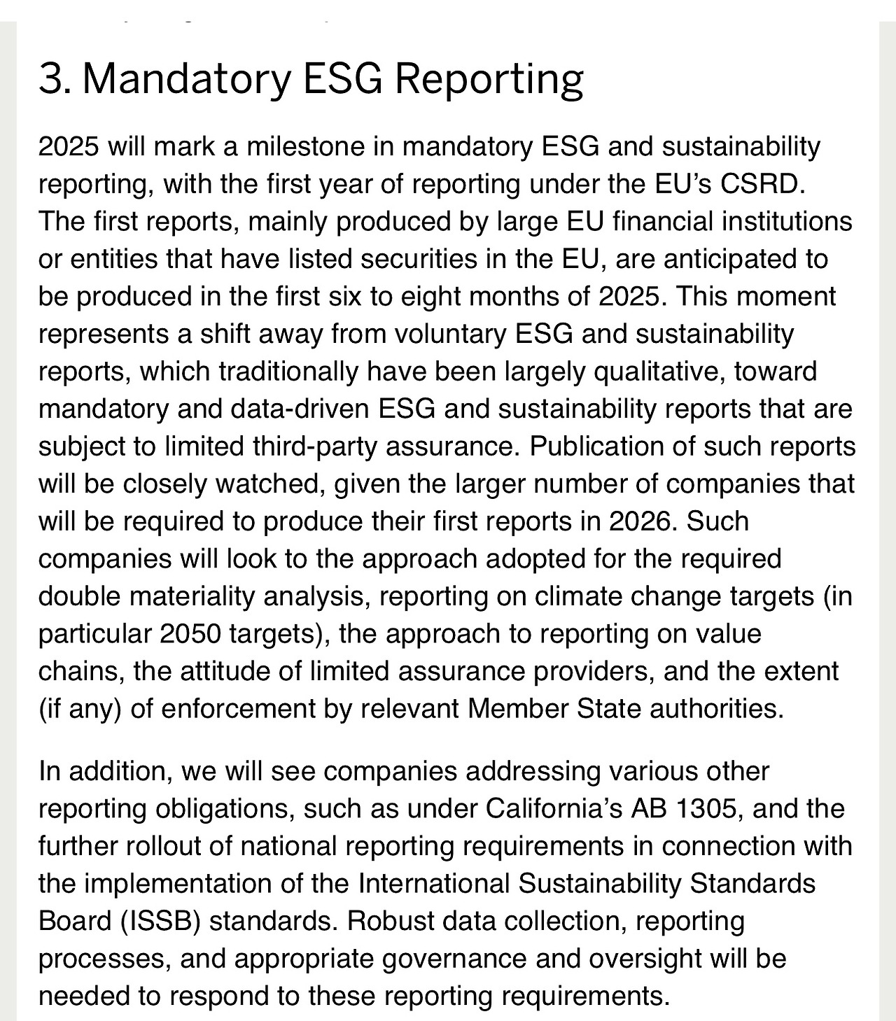 (출처: Harvard Law School Forum on Corporate Governance, ESG and Sustainability Insights: 10 Things That Should Be Top of Mind in 2025, Paul Davies & Betty Huber, Latham & Watkins LLP, 2025년 1월 18일)
