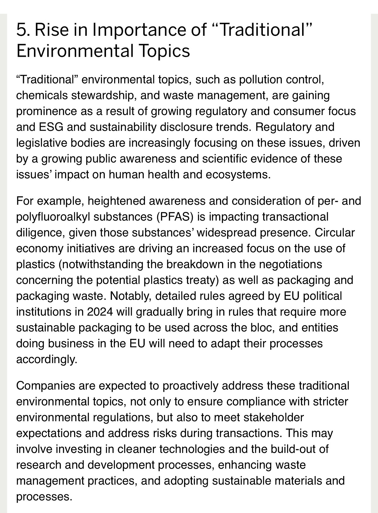 • 폐기물 및 화학물질 관리 강화: 환경 규제 및 소비자 인식 변화로 인해 오염 관리, 화학물질 규제(PFAS), 폐기물 관리가 더욱 중요해짐.
