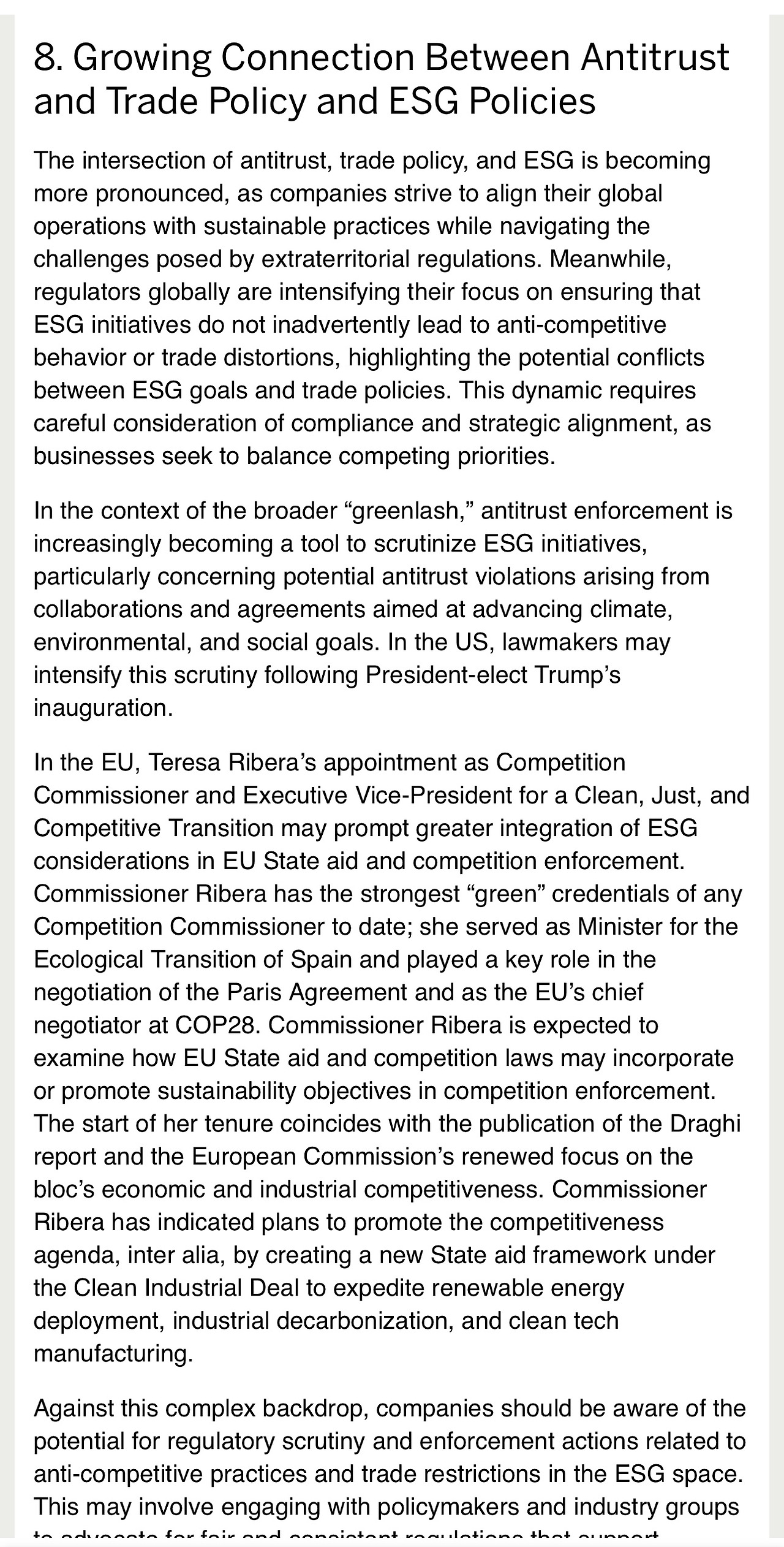 • ESG와 독점금지법(반독점법)의 충돌 가능성: 지속가능성 목표를 추진하는 과정에서 반경쟁적 행위로 간주될 위험 존재.