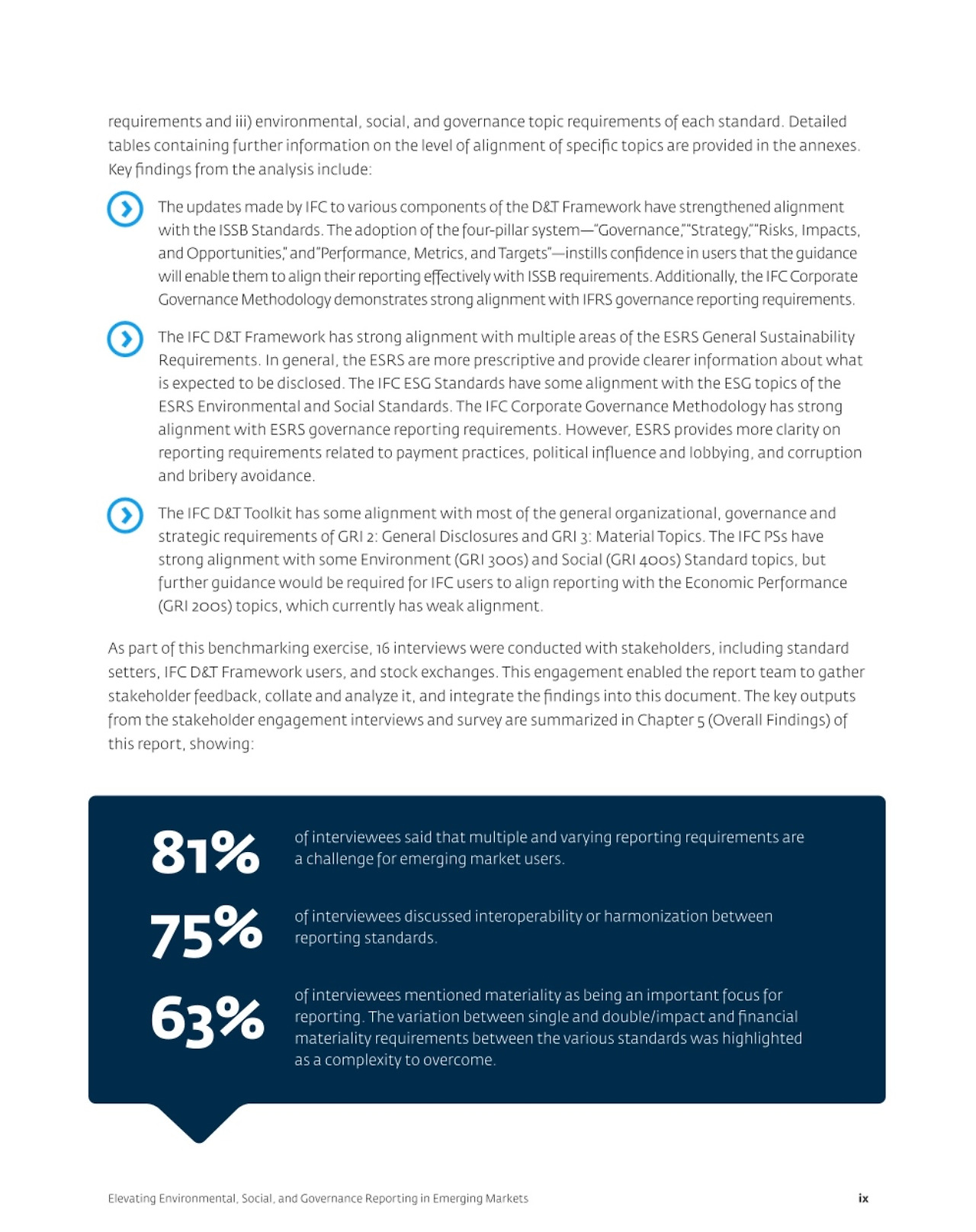• 본 보고서는 IFC D&T 프레임워크와 ESRS, ISSB, GRI 표준 간의 벤치마킹 분석을 수행