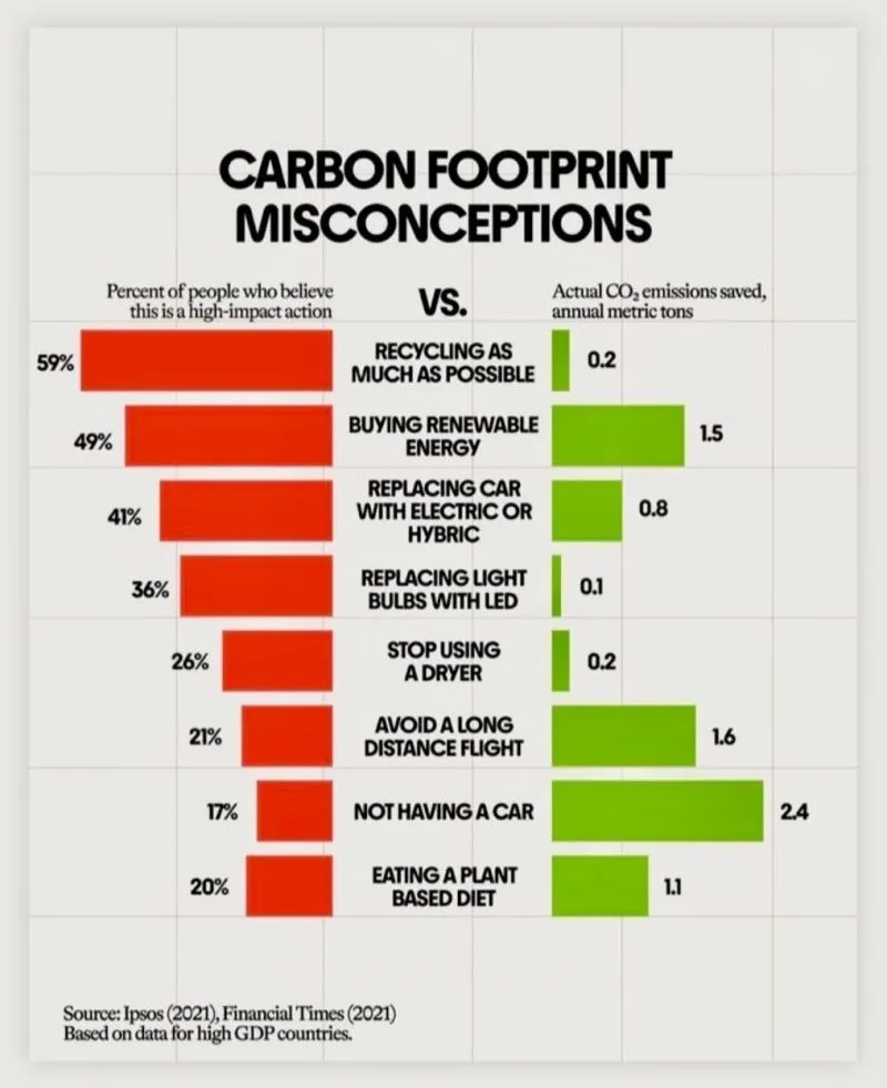 진실은 우리가 실제로 배출량을 줄이는 것이 무엇인지에 대해 잘못 인도되어 왔으며, 이는 종종 지나치게 단순화된 메시지 때문입니다.
