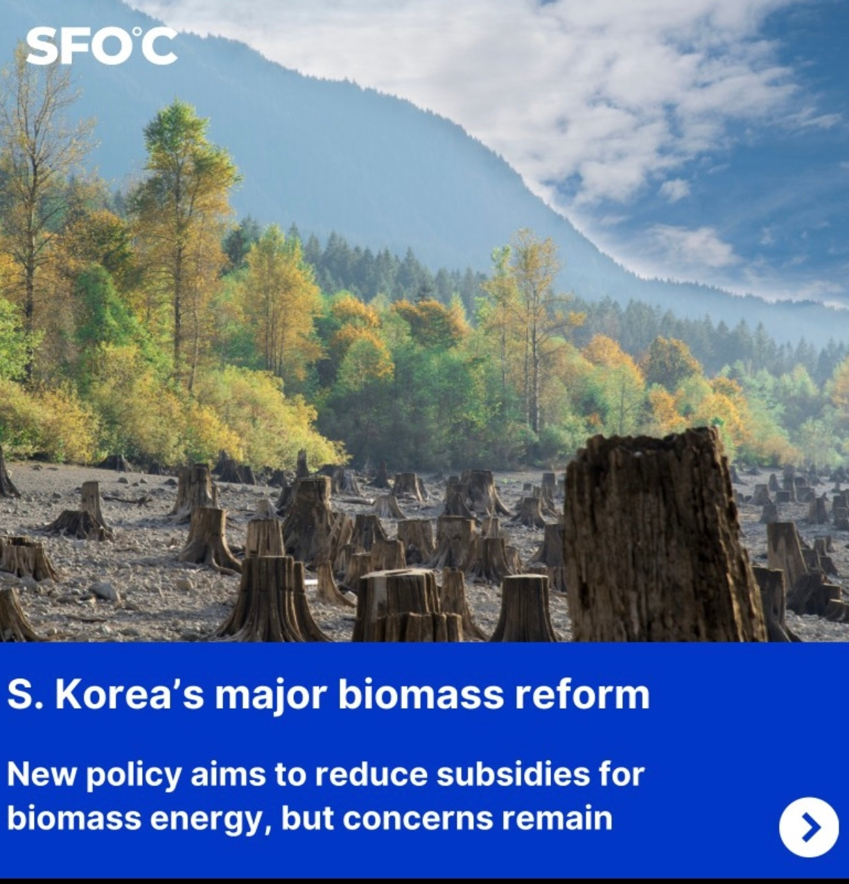 지금쯤이면 대규모 #biomass 은 재생 가능 에너지에 해당하지 않는다는 것이 분명해졌을 것입니다. Solutions for Our Climate (기후솔루션) 는 한국 Ministry of Trade, Industry and Energy 이 2025년부터 신규 바이오매스 발전소에 대한 재생에너지 인증(REC) 종료를 포함한 바이오매스 에너지에 대한 보조금을 줄이겠다는 계획을 설명하는 이슈 브리프를 발행했습니다. 기존 시설은 향후 몇 년 동안 지원이 점진적으로 줄어들 것입니다.