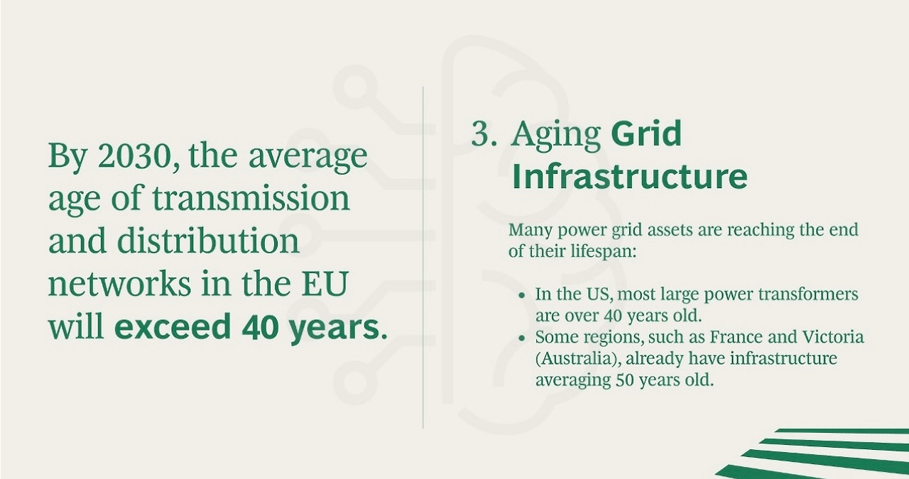 3. 노후화된 전력망 인프라 문제 (2030년까지 EU 송배전망 평균 연령 40년 초과)