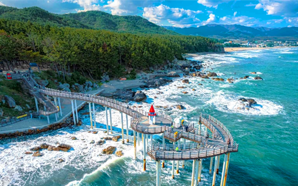 전망대 바닥 일부는 투명 강화유리로 되어 있어 아래로 펼쳐진 바닷속까지 들여다볼 수 있으며, 전망대 아래에는 동굴형 포토존이 마련돼 있어 감각적인 사진을 남기기에 제격이다. 전망대 주변에는 해송 숲이 자리 잡고 있어 그늘 아래 쉬어가기에도 좋고, 이가리 간이해수욕장과 기암괴석이 어우러진 풍경은 마치 그림처럼 펼쳐진다.