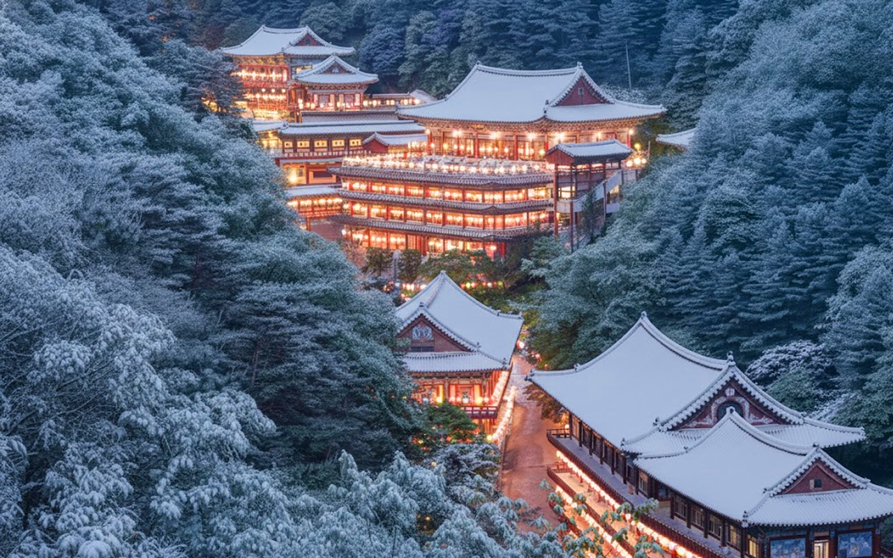 # 설경 속에 빛나는 황금빛 기적, '대조사전'
