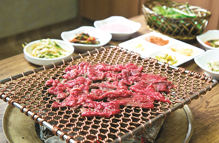 숯불 향이 은은히 배인 얇은 쇠고기 위에 얹힌 감칠맛 가득한 양념,
