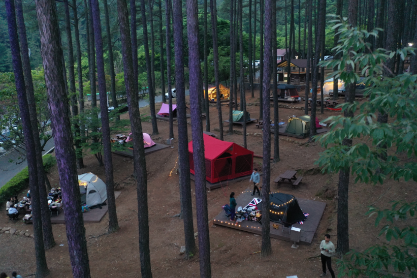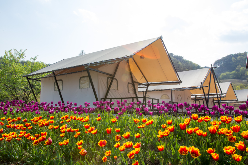 자연 속에 숨은 글램핑장이 이국적인 분위기를 자아내며,