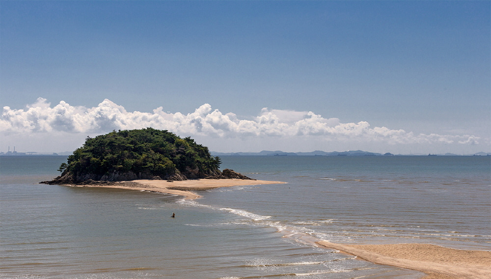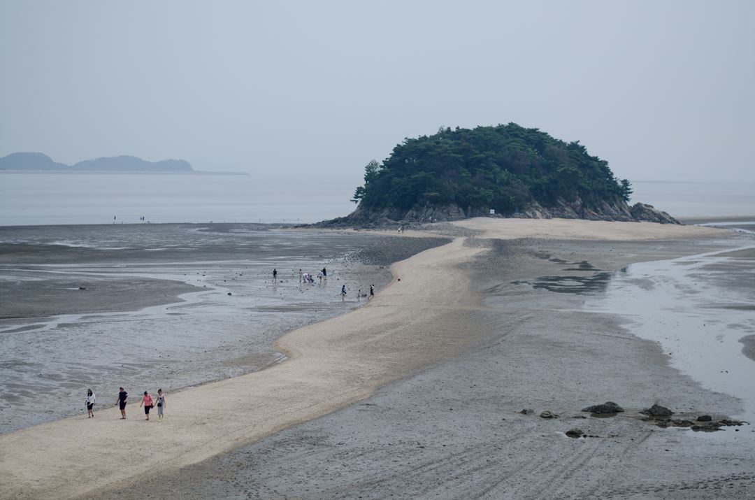 썰물 시간에 맞춰가면, 믿을 수 없을 만큼 선명한 모랫길이 물 위로 펼쳐진다.