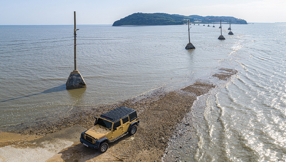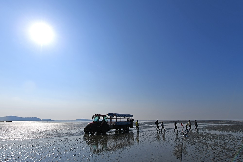 이 길은 질척거리는 갯벌 사이로 자동차가 다닐 정도로 단단한 모래로 되어 있어 직접 걸어 들어갈 수 있다.