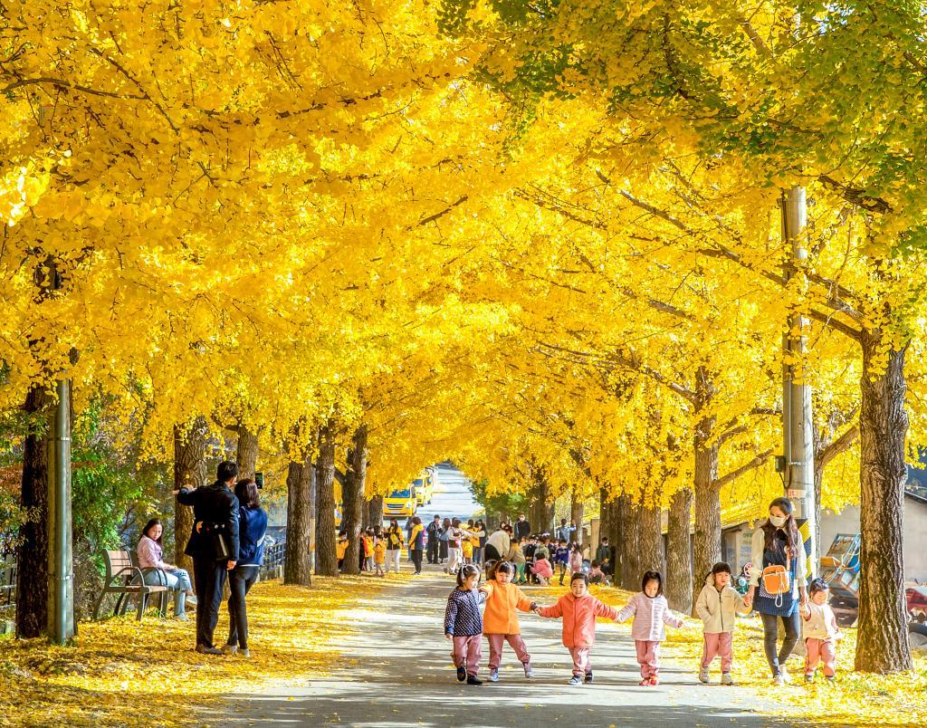 노란 은행잎이 만든 황금 터널이 기다리고 있기 때문이다.