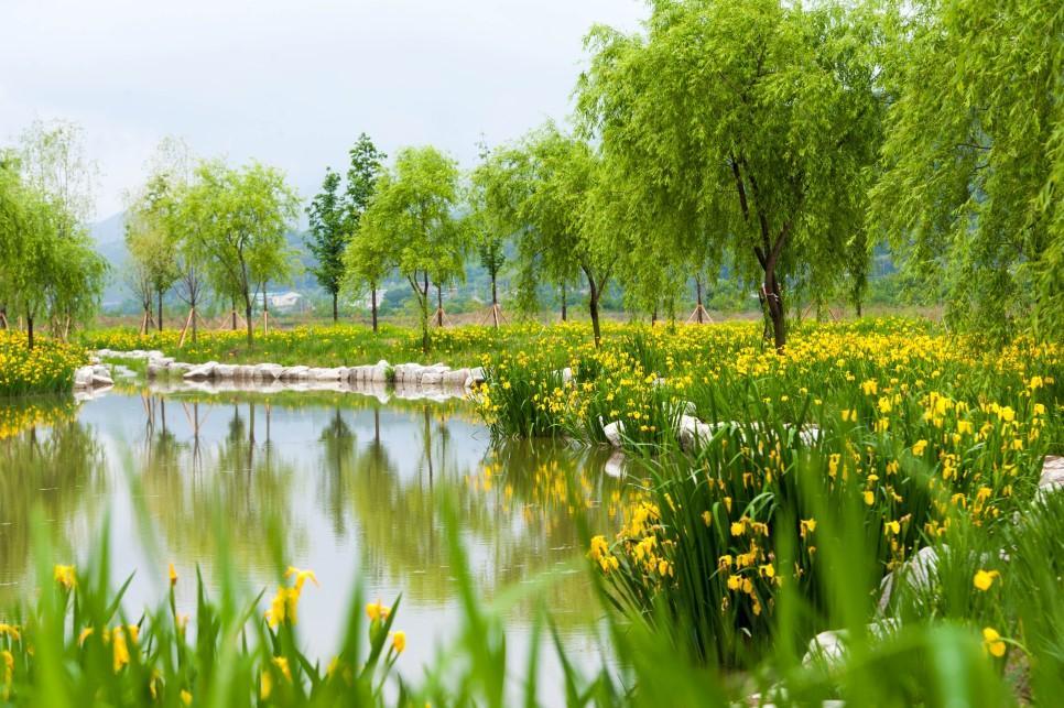 봄엔 꽃창포와 왕벚꽃, 여름엔 연꽃과 수국,
