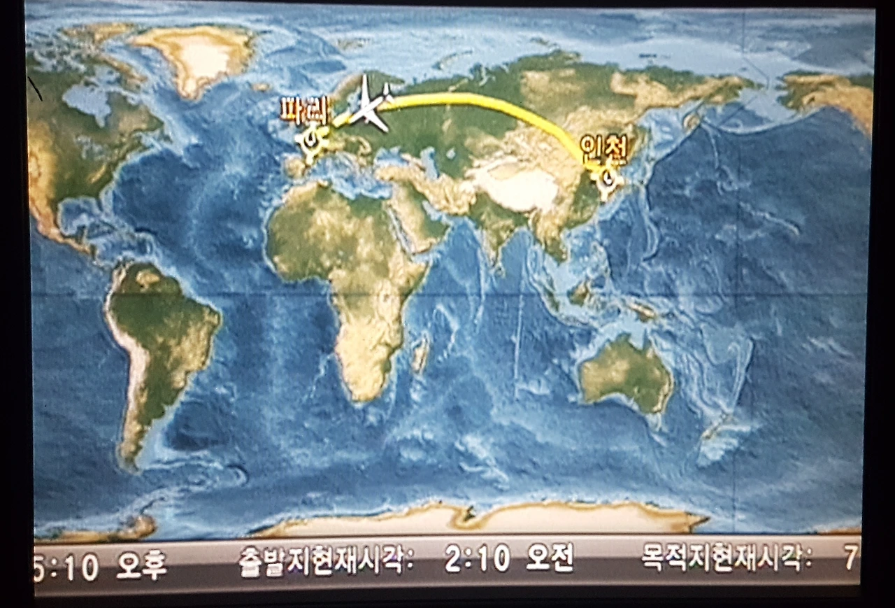 한국에서 저녁에 출발했는데 파리는 아직도 오후다.