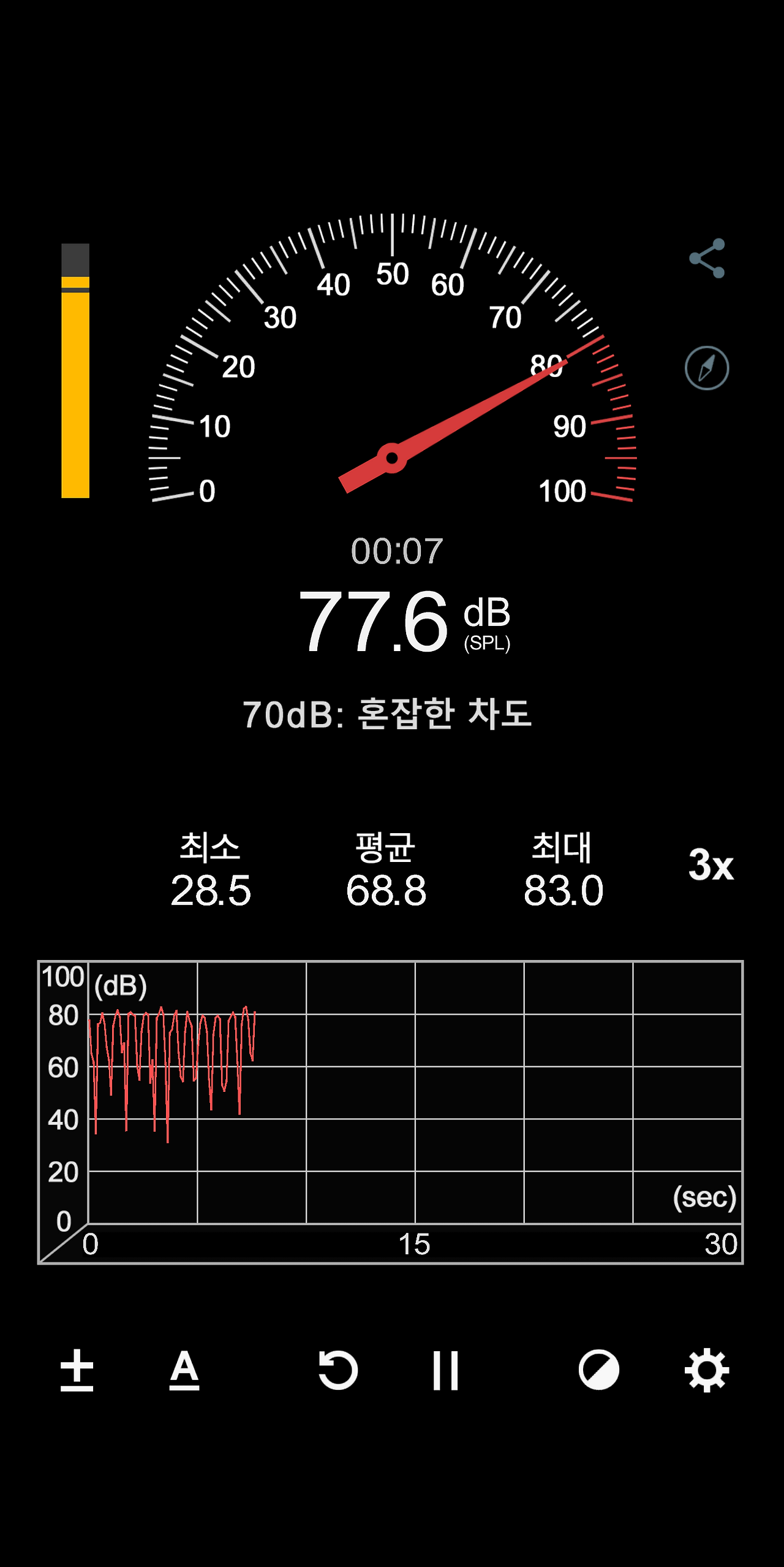 딴딴이 울음 데시벨=혼잡한 차도