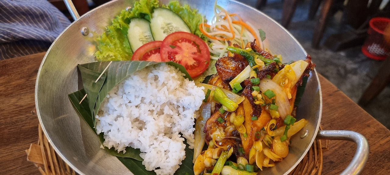 주섬주섬 비 옷을 챙겨 입고 집을 나선다. 지난번에 한번 들렀던 국숫집, 포 슈어에 한 번 더 들를 참이다. 한국에서 가져온 여행 안내서에 의하면 올드타운에서 가장 맛있는 쌀 국숫집이라고 소개되어 있다. 게다가 값도 만만해서 걱정 없이 사 먹을 수 있는 곳이란다. 화이트 로즈와 구운 닭에 밥이 나오는 껌가, 돼지고기가 얹힌 비빔국수 까오 라우를 시켰다. 쌀가루로 만든 딤섬 같은 화이트 로즈는 애피타이저 삼아 조금씩 나눠먹고, 비빔국수와 닭고기 밥을 메인으로 나눠 먹을 요량으로 말이다. 먼저 화이트 로즈가 나왔다. 화이트 로즈, 말 그대로 백장미처럼 생긴 이 요리는 쌀가루를 얇게 반죽하여 만든 하얗고 야들야들한 물만두다. 속을 아주 조금만 넣고 만두피를 얇게 살려서 마치 꽃처럼 펼친 위에 바삭거리는 고명을 얹었는데 구운 마늘이라고 한다. 접시에 놓인 모습부터 눈을 즐겁게 한다. 야들야들한 쌀로 만든 물만두가 하얀 꽃잎을, 가운데의 노르스름 바삭바삭한 구운 마늘 고명이 꽃술을 이루었다. 이걸 달콤 매큼 새큼한 소스에 살짝 찍어서 입에 넣으니 순간 피식, 웃음이 나온다. 간질간질 파삭거리는 식감과 상큼한 맛이 마치 동화처럼 느껴져서 나도 모르게 나오는 행복의 웃음이다. 워낙 부드럽기에 씹고 자시고 할 것도 없이 입에서 스르르 녹아 넘어가는 듯한데 여운을 느끼기에 참을성이 부족하여 두 번째 화이트 로즈를 입에 넣었다. 행복하다. 무얼 먹으며 행복하다는 걸 이렇게 느끼는 건 흔치 않은 일이다. 그저 맛있다거나 훌륭하다는 정도의 형용사가 어울리는 게 음식 아닌가? 그런데 행복하다는 다소 폭넓고 추상적인 단어가 튀어나온다. 아내도 대단히 만족한 표정이다. 다섯 개 중에 세 번째를 젓가락으로 집으며 '음, 행복하네'란다. 보통은 세 번째를 나에게 양보하는 아내가 마지막을 집었다는 건 맛있거나 남편이 미덥다는 뜻이니 둘 다 좋은 일이다. 냉큼 하나를 더 시켜서 이번에도 아내에게 3개를 건넨다.