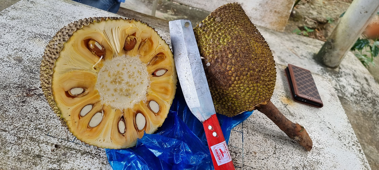 두리안이 비싸고 부담스러우면 대체품으로 잭프룻을 권한다. 잭 프룻은 두리안과 비슷하게 생겼지만 가시가 더 작고 과일은 더 크다. 이걸 열면 씨앗을 품은 작은 과육들이 수도 없이 줄지어 있는데 이걸 적당한 양으로 소분해서 팔고 있다. 맛은 약간의 두리안 냄새에 달착지근하고 아삭한 식감이 좋다. 더구나 수확시기가 두리안은 여름인데 비해 잭 프룻은 겨울이니 말하자면 제철과일이다. 가격은 KG당 2만 동쯤.