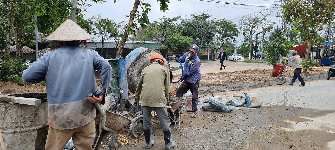 다리를 건너 해변 마을로 들어선다. 한창 기계소리를 내며 도로 공사를 하고 있다. 자세히 보니 도로 옆에 하수도를 묻는 중이다. 우리처럼 레미콘에 펌프카를 쓰는 게 아니라 작은 교반기에 시멘트와 모래를 비벼서 몰탈을 만들고 작은 수레에 이 몰탈을 받아서 일일이 붓는, 우리나라에서는 오래전에 사라진 방식이다. 신기해하며 사진을 찍었다.