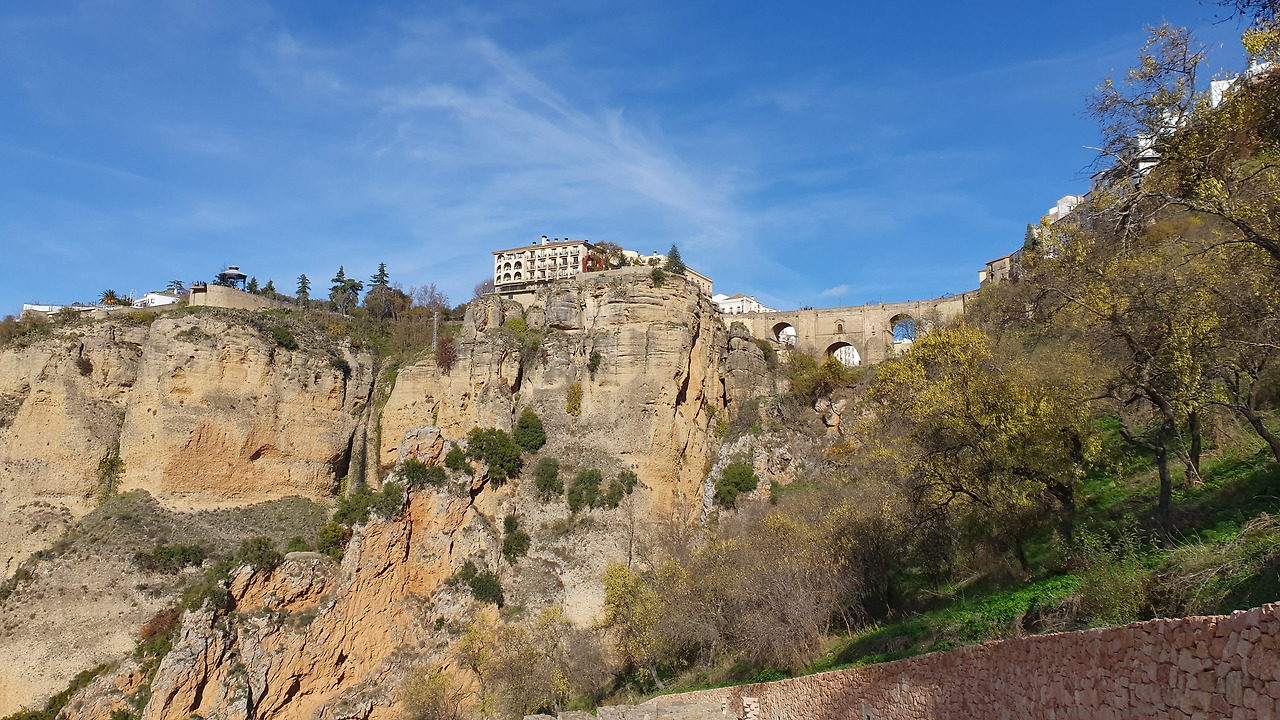 그러나 정작 나에게 감동을 준 곳은 세비야에서 좀 떨어진 절벽 위의 도시, 론다(Ronda)였다. 론다는 투우장과 누에보 다리로 잘 알려진, 인구 4만 정도의 크지 않은 관광지다. 누에보 다리는 120m, 아찔한 높이의 협곡에 걸쳐 세워져 있는데 클래식한 모습과는 어울리지 않게 누에보(nuevo, 영어로는 new)라는 이름으로 불린다. 1793년, 40년의 공사 끝에 완성되었다는데 물론 그 당시에는 최신식 다리였으리라. 높은 교각을 절벽에 붙여 쌓아서 마치 다리와 절벽이 하나인 듯, 안정감이 느껴진다. 론다의 대표적인 랜드마크이고 늘 관광객들의 발길이 끊이지 않는 곳이다.