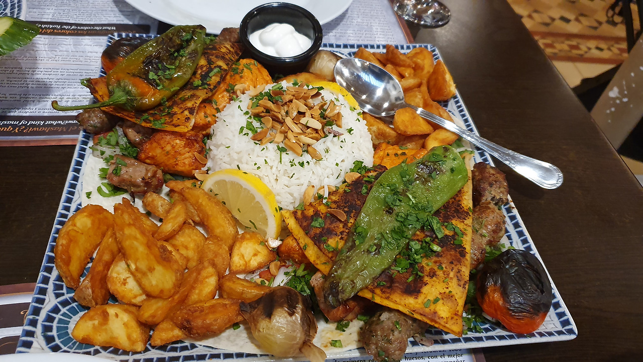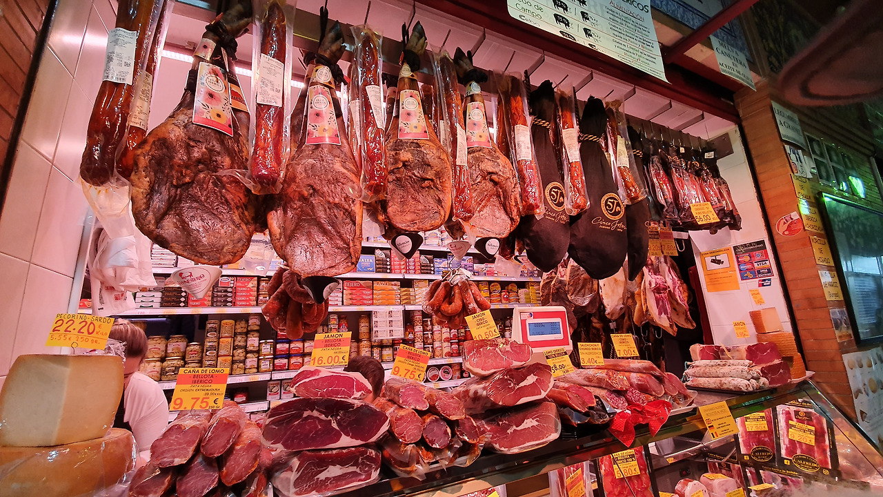 하몽을 파는 상점과 아랍 식당의 점심식사