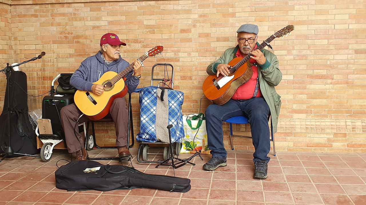 스페인 광장 입구에서 오래된 친구로 보이는 두 할아버지가 버스킹 중이다.