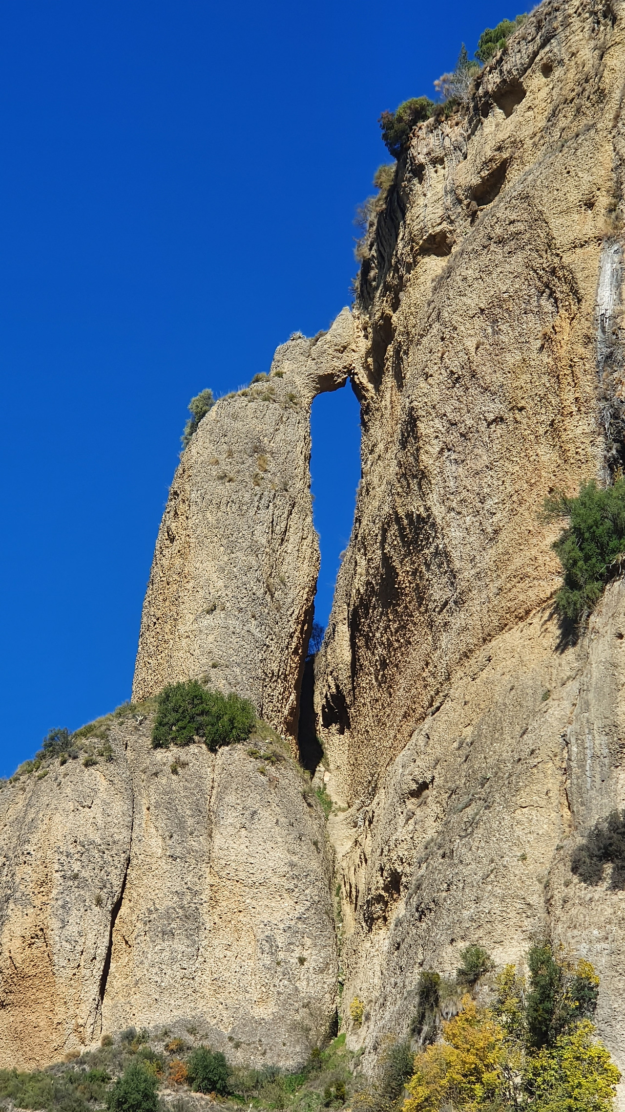그런데 론다에서 감동받은 것은 정작 누에보 다리가 아니라 다리가 걸린 절벽이었다. 그것도 내려다본 절벽이 아니라 올려다본 절벽 말이다. 절벽을 따라 구불구불 오솔길로 잠시 내려오면 다리와 절벽을 중간쯤에서 조망할 수 있는 포인트가 있다. 이 지점에서 올려다보면 절벽 위의 아슬아슬한 집들과 난간에 기대어 선 사람들과 누에보 다리 상판이 차례로 보이고 아래를 보면 계곡과 나무와 집들, 그리고 그 집들을 잇는 마을 길이 그림처럼 펼쳐진다.
