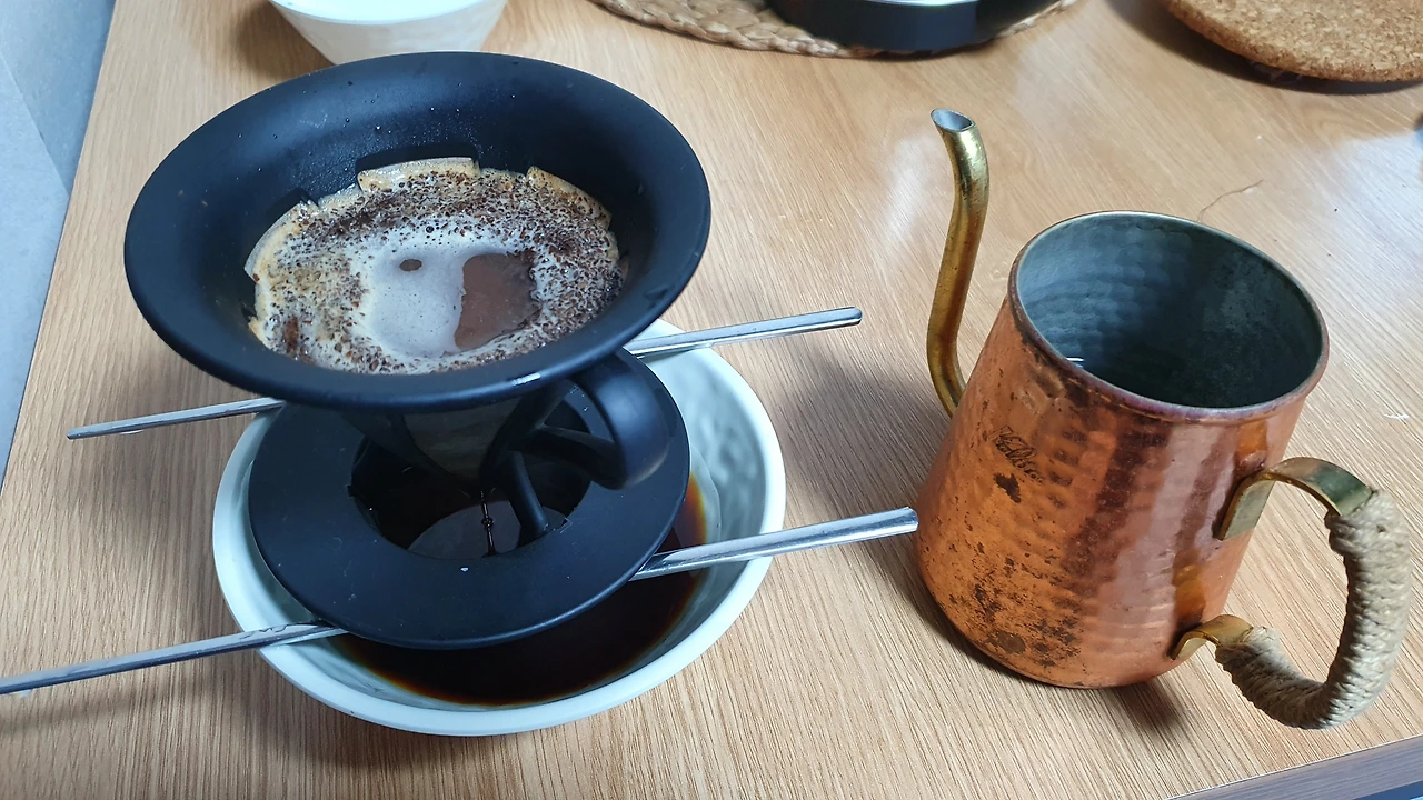 식사는 대충 이런 식이다. 아침으로는 집에서 싸온 만두소로 김치만두를 만들고 떡을 넣어 떡만둣국을 끓였다. 거기에 과일과 요구르트를 후식으로 먹고 커피까지 내려 마셨다. 서버가 없어서 대신 밥공기에 젓가락을 걸쳐놓고 드립 했지만 이것도 여행의 맛이거니 생각하면 그만이다. 간식으로는 고구마와 계란을 삶아 귤과 함께 배낭에 넣고 다닌다. 얼마 들이지 않고도 아침과 점심식사까지 한방에 해결했다, 그것도 아주 만족스럽게.