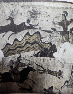 두 번째는 그림의 위쪽에서 사슴을 사냥하는 사람을 보도록 하자.