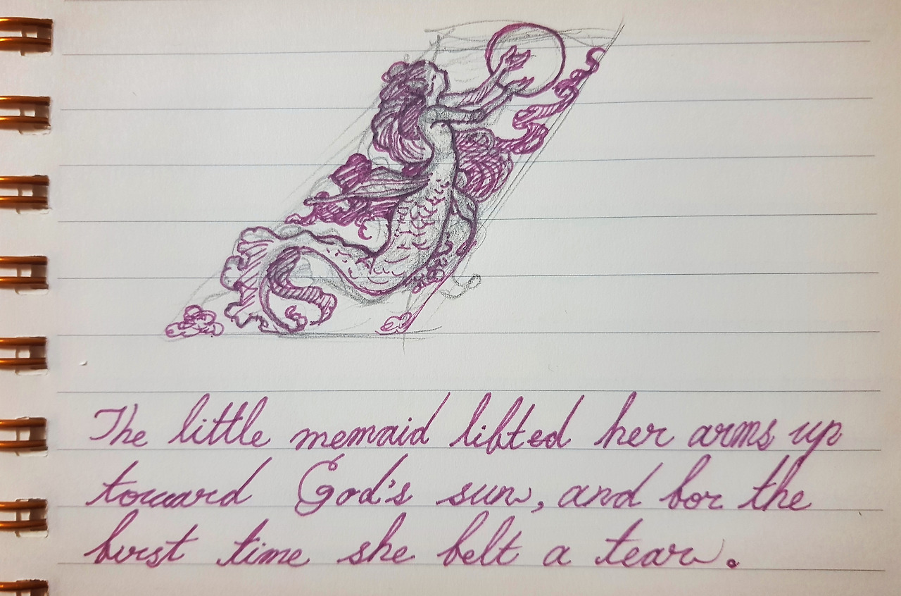 한스 안데르센이 내게 보낸 편지의 말미에는 이렇게 쓰여있었다. "그 어린 인어는 하늘의 영광스러운 빛을 향해 두 팔을 뻗었고, 그녀의 눈에서는 난생처음 눈물이 흘렀다네."