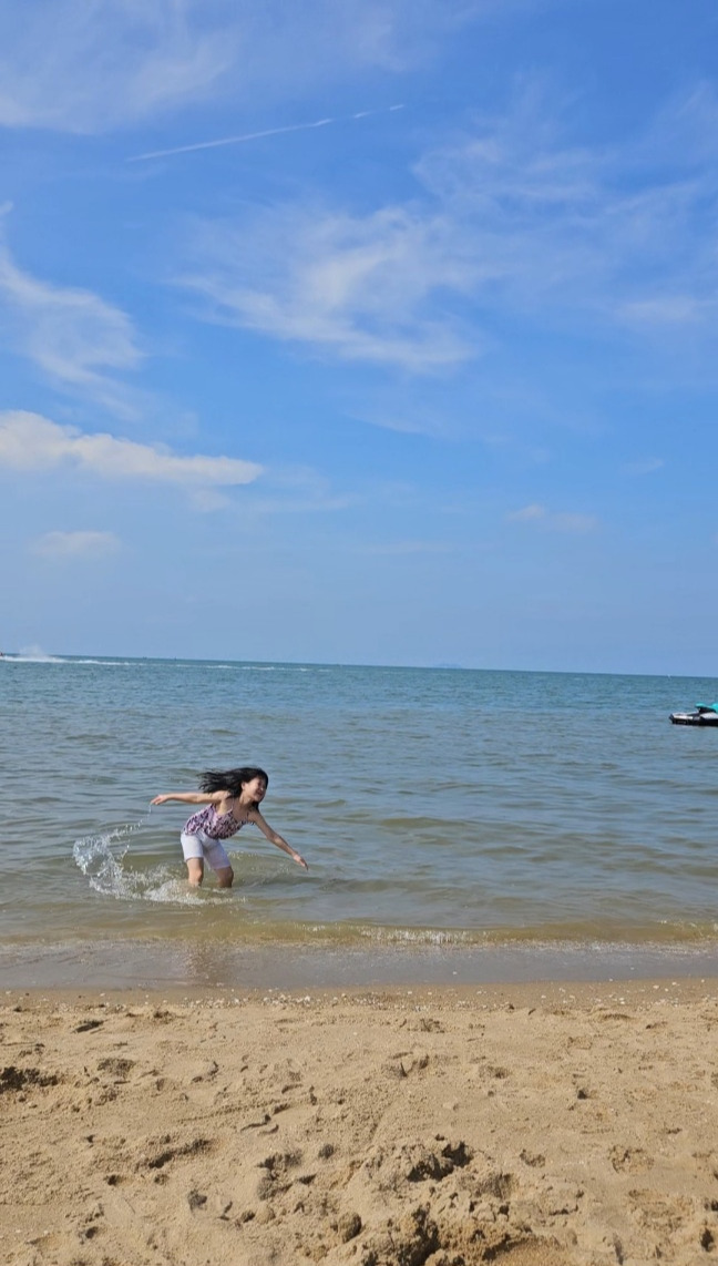 그에 비하면 한 번에 쳐들어 먹지 않는 망아지. 조식 마감 시간이 있다고 설득해 수영장 밖으로 가까스로 탈출. 조식 후 미팅시간까지 30여분 남아 숙소 바로 앞 바닷가 산책을 하는데 물을 보더니 또 수영하겠다고 환장.