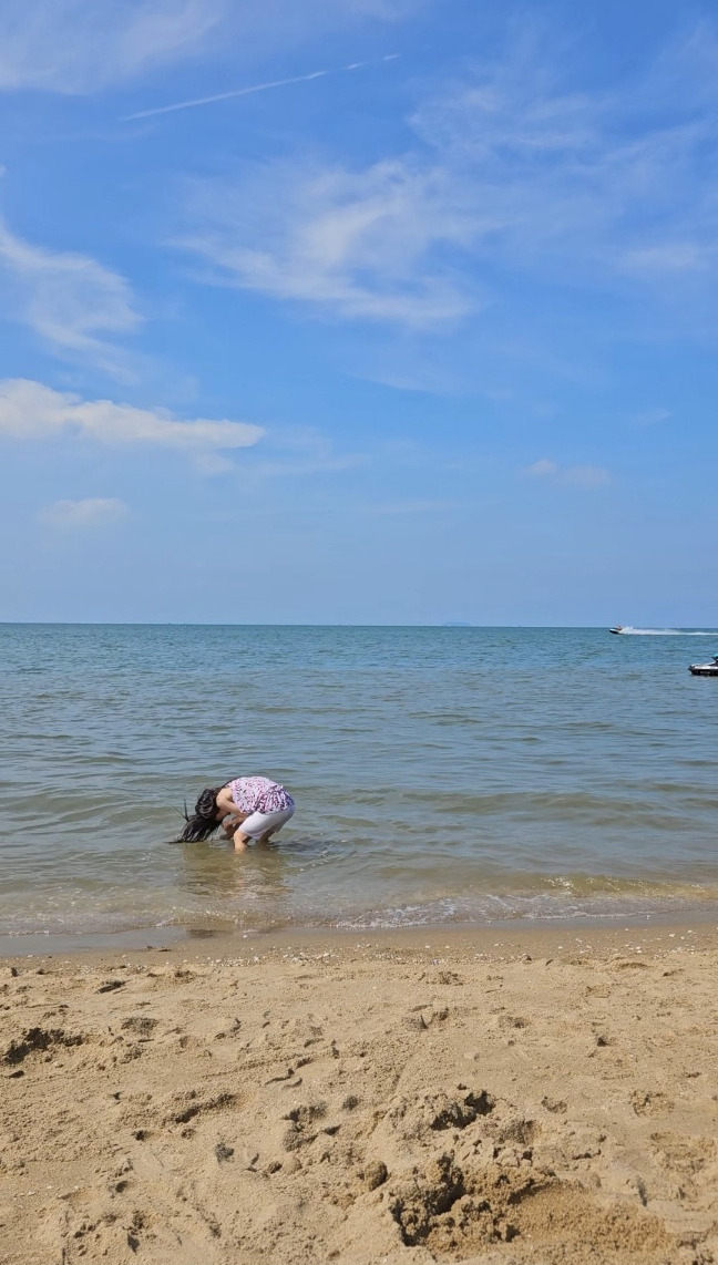 오후 일정에 스노클링과 요트투어라고 실컷 바다수영이 예정되어 있다고 설명했음에도 불구하고 이미 바닷물에 뛰어 들어가 기어코 옷을 젖게 만드는 망아지. 결국 쭈마마에게 뒷덜미를 잡혀 질질 끌려 나왔다고 한다.