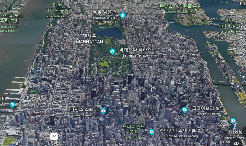 뉴욕 센트럴 파크 중심으로(구글 어스)