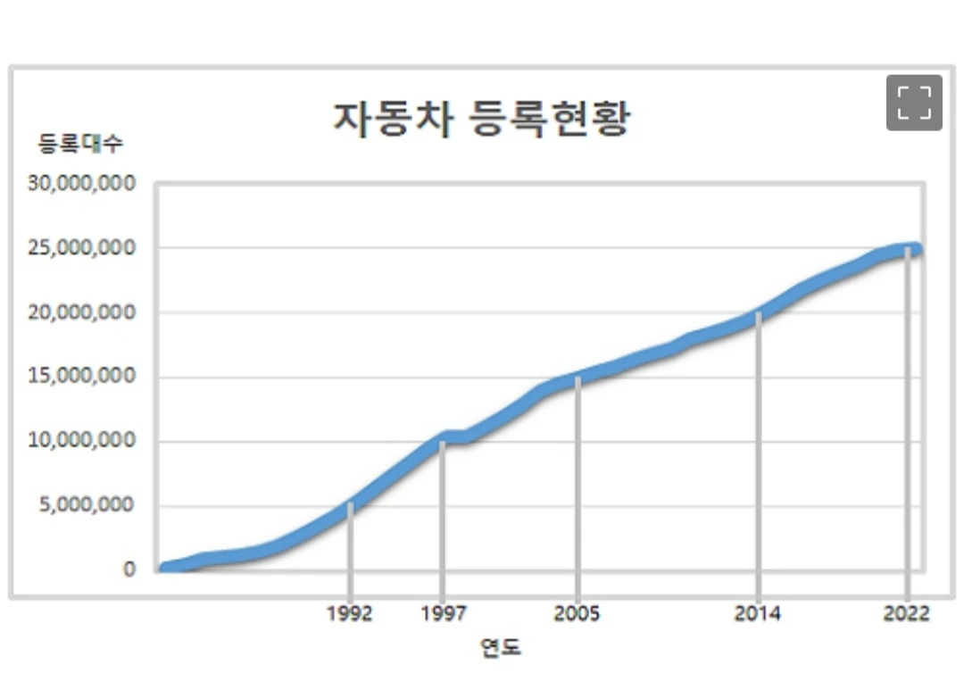 자동차 등록의 변화(통계청)그래서 대부분의 단지가 지하주차장이 없다.