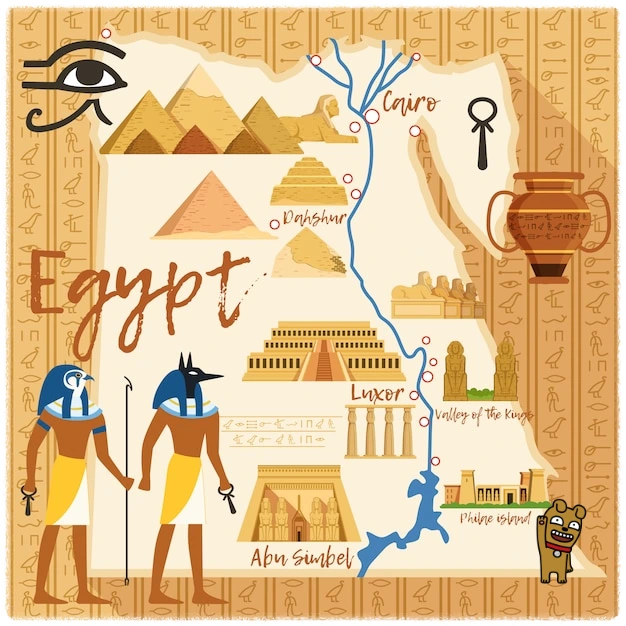 이집트 관광지도를 찾아보니 'PREEPICK'사이트에 아주 좋은 이미지가 있었다. 아래 지도처럼 크루즈를 타고 나일강을 따라 아부심벨에서 대신전, 소신전을 보고 아스완에서 필레신전을 돌아보았다. 아스완과 아부심벨은 누비아지역의 유적지로 수많은 유물들이 발견된 장소이다. 왕들의 계곡과 룩소를 거쳐 기자 피라미드와 스핑크스를 관광하였다.