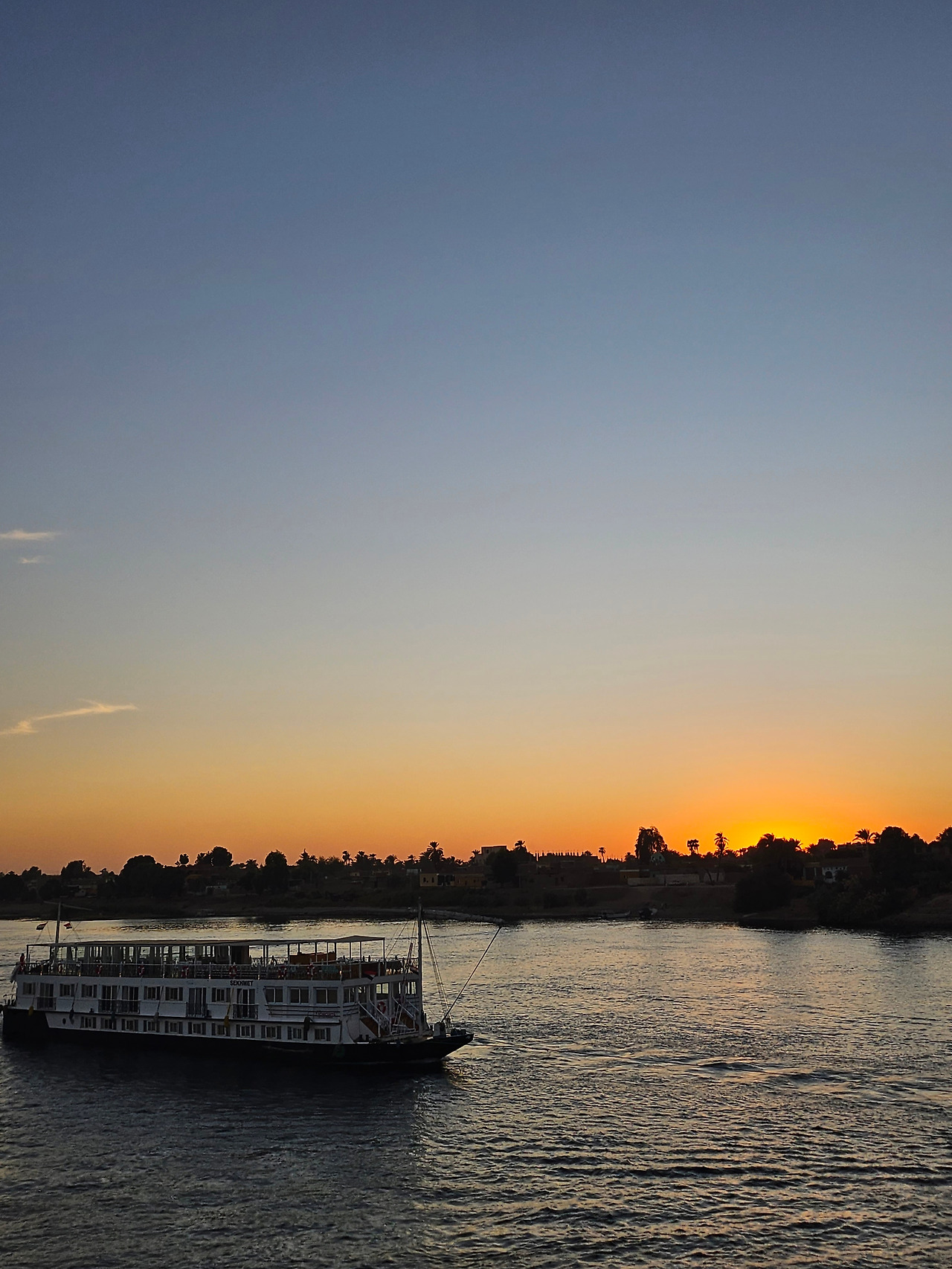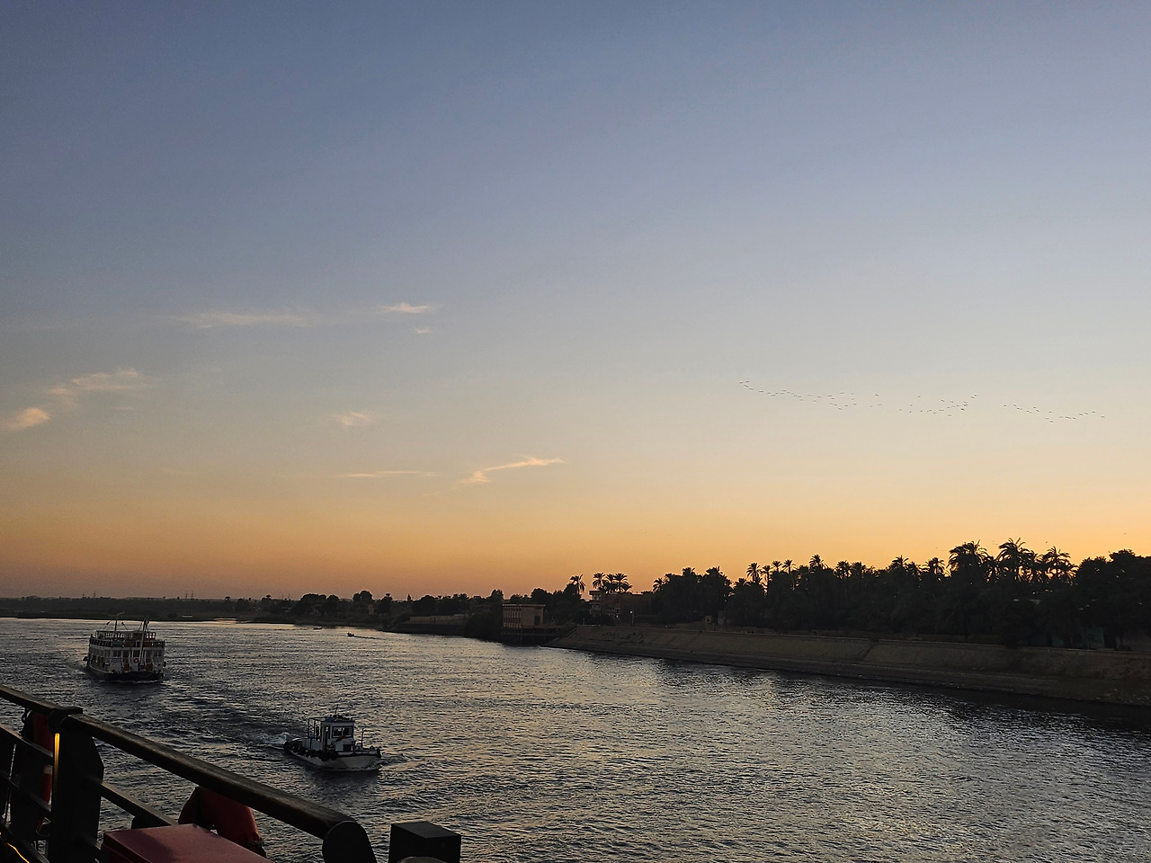 하루 일정을 마치고 배에 승선하여 샤워하고 잠시 쉼을 가졌다. 해 지는 시간을 확인하여 배 위로 올라갔다. 나일 강에서 바라보는 석양은 정말 아름다웠다. 워낙 건조하고 맑은 날씨인지라 하늘도 파랗고 그래서인지 해가 지는 하늘도 붉었다. 짙은 푸른 강 위로 줄지어 가는 여객선들과 붉은 노을이 어우러진 풍경을 바라보자니 돌아가신 엄마가 너무나 생각이 났다.