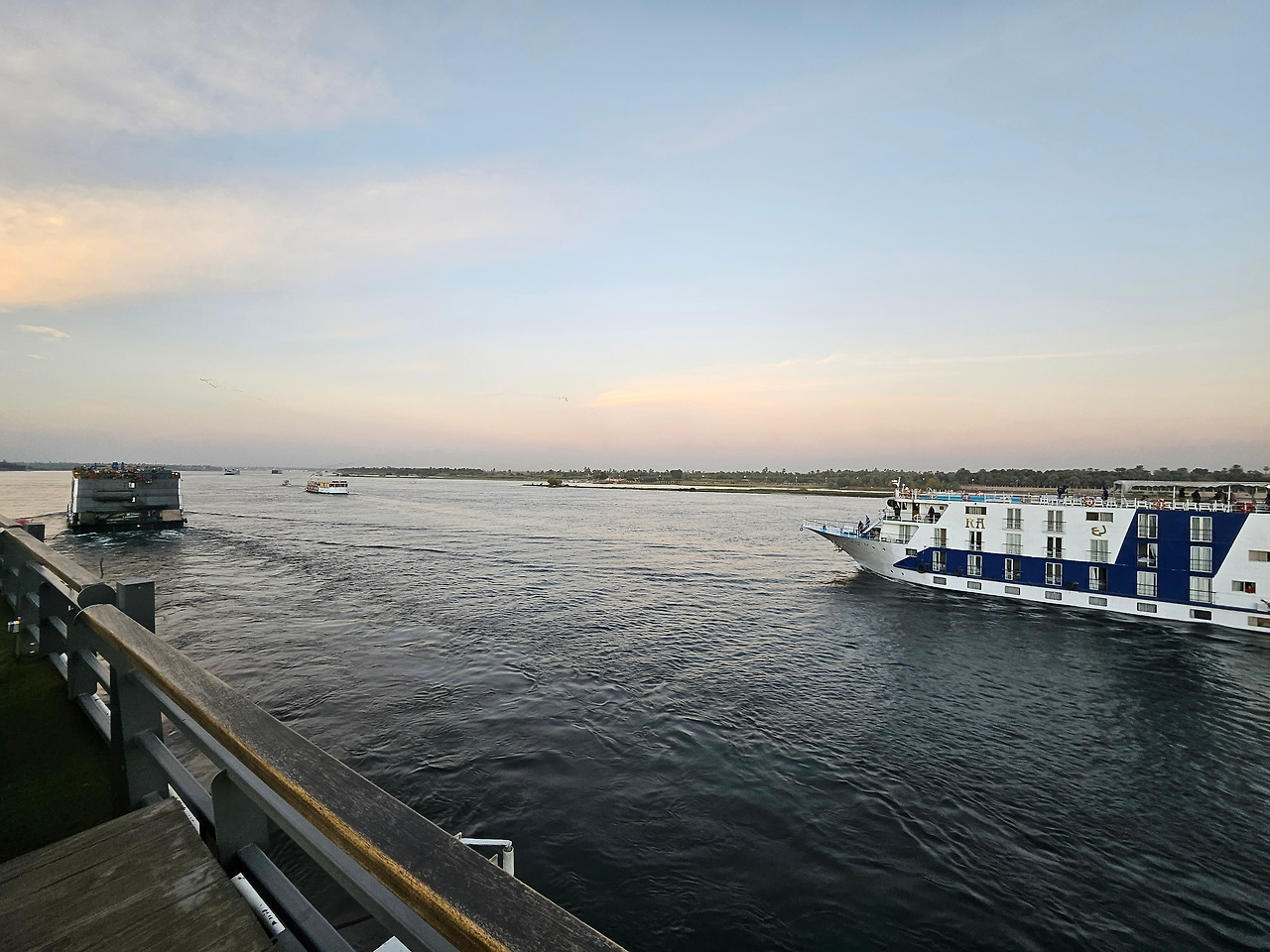 아부심벨에서 크루즈를 타고 아스완, 에디푸, 룩소르까지 나일 강 상류에서 하류로 여행을 떠난다. 거대한 크루즈들이 경쟁하듯이 강을 가로지르며 멋진 풍경을 만든다. 최고 럭셔리 크루즈라고 가이드가 자신 있게 소개했다. 승선해서 돌아보니 예전에 탔던 KTX 럭셔리 여행객차 '해랑'의 나일 강 버전이라고 할까? 선실 안은 깨끗하고 나름 넓었으며, 로비도 고급스러운 인테리어로 잘 되어 있었지만, 그 외 시설은 별로 없어서 여객선으로 좋은 수준이었다. 분명한 건 타이타닉 호와 같은 크루즈는 아니었다.