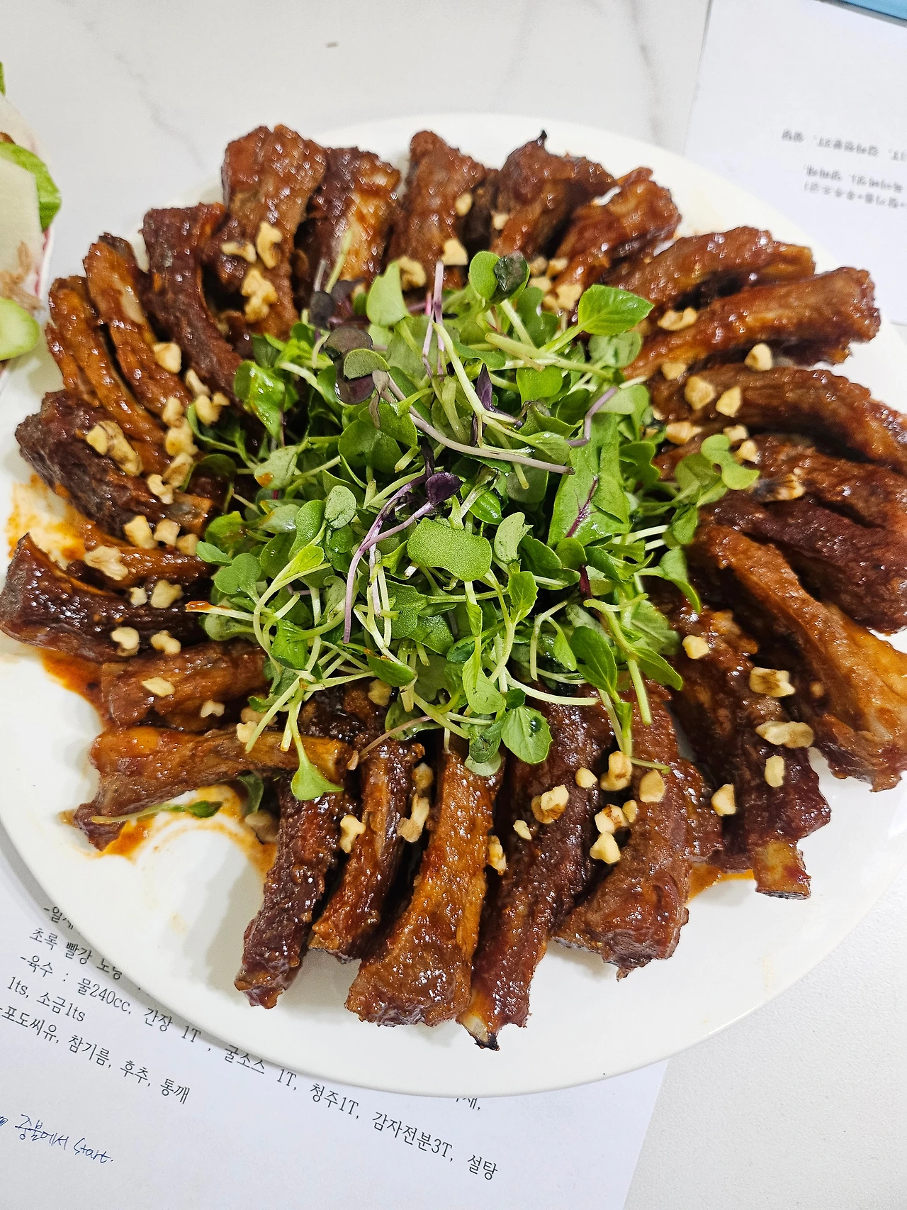 "아들에게 맛있는 요리를 해주고 싶다"는 막내 동생이 요리를 배우러 왔다. 조카가 좋아하는 립, 치킨과 찹쌀파이를 배우고 싶대서 샐러드까지 4개의 요리를 같이 만들었다. 혼자 조리를 할 때와는 달리 조리과정을 보여주고 설명하자니 쉽지 않았다. 덕분에 3개월 만에 처음으로 기름에 손도 데었다. 그래도 똥손이, 사랑하는 막내에게 요리를 해줄 수 있었다. Ti 프라이팬 하나로 립칠리, 교촌치킨과 찹쌀파이까지 구웠다. 꿈을 이루어준 고마운 장비다. 부모님을 일찍 여의고 마음에 아픔이 있는 막내 동생에게 사랑을 나누어 줄 수 있어서 감사한 하루였다.