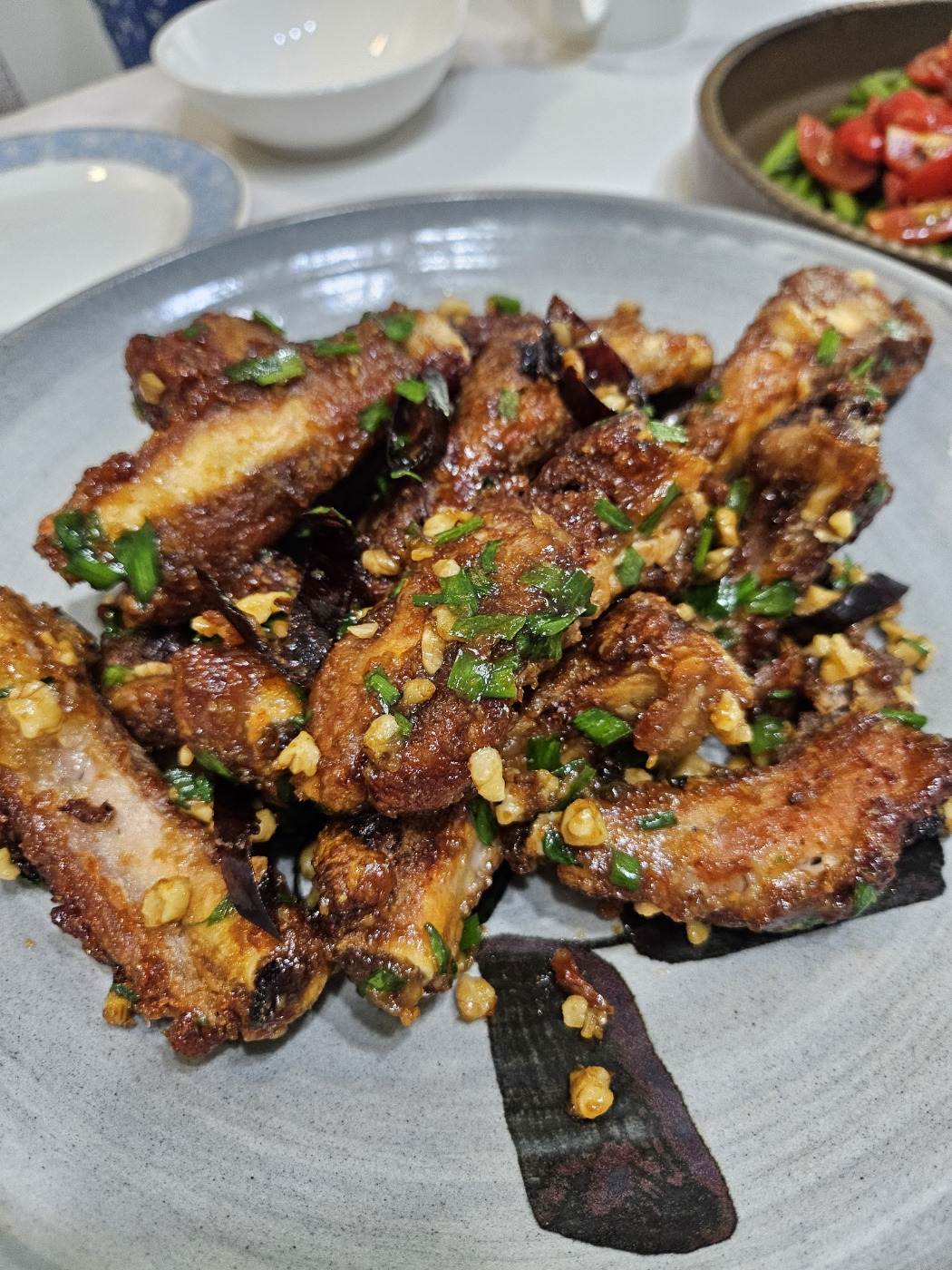 하루 종일 에어컨을 돌릴 수 없어서 휴식기를 가지려니 입맛도 없다. 시원한 아이스커피나 탄산수, 생수로 배를 채우니 식사시간에도 입맛이 당길리 없다. 덕분에 자연스럽게 다이어트가 되긴 하나, 더위에 지치지 않으려면 적당한 에너지원 섭취도 중요하다. 레시피 북을 펼쳐 더운 날 입맛을 돌게 할 요리를 찾았다. 역시 입맛을 돌게 하는 데는 매꼼 짭짤한 등갈비 강정이 제격이다. 퀸 요리는 적은 기름으로도 튀김을 할 수 있어서 부담 없이 조리를 할 수 있어서 너무 좋다. 바삭하게 튀긴 등갈비를 소스에 졸여내고 쪽파와 호두분태를 뿌리니 군침이 돈다 (mouth-watering). 예쁘게 담아 식탁에 올리니 고기를 좋아하는 아들이 생각난다. 야채를 즐겨하는 며느리 덕에 아들이 늘 건강식을 먹게 된 것은 참으로 감사할 일이나, 고기 요리를 할 때마다 아들이 생각나는 것은 어쩔 수 없는 어미의 마음인가 보다.